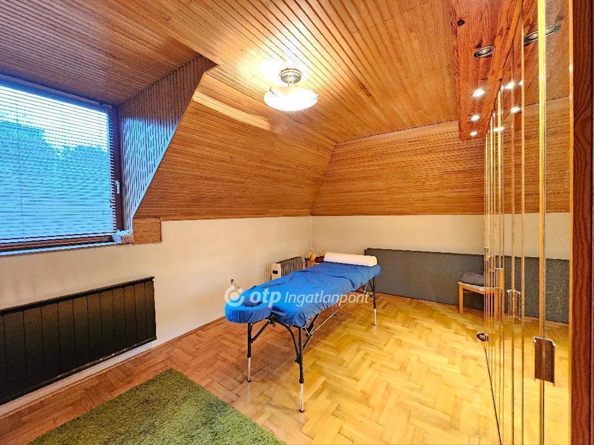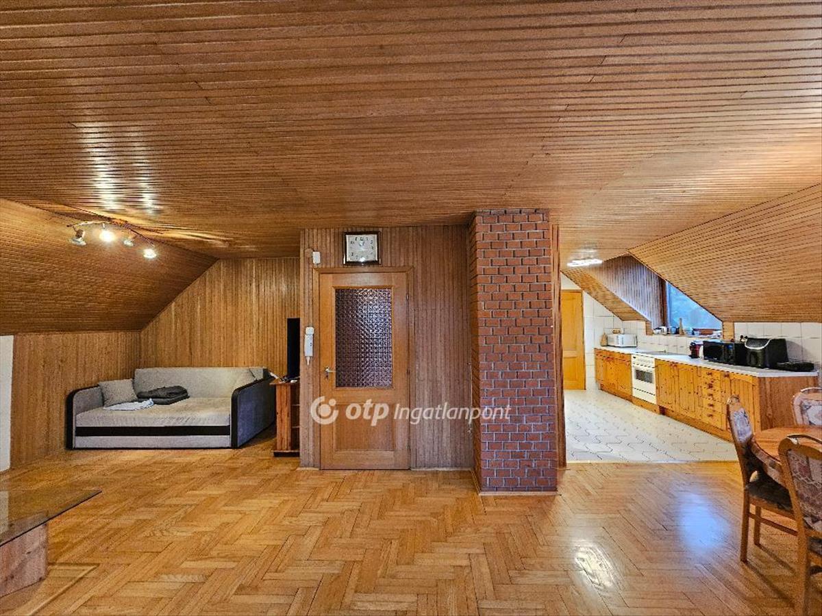 A lakásban két hálószoba, fürdőszoba WC-vel, valamint külön wc található. a fa lambériával burkolt tetőtér különösen meleg, barátságos hangulatot teremt.