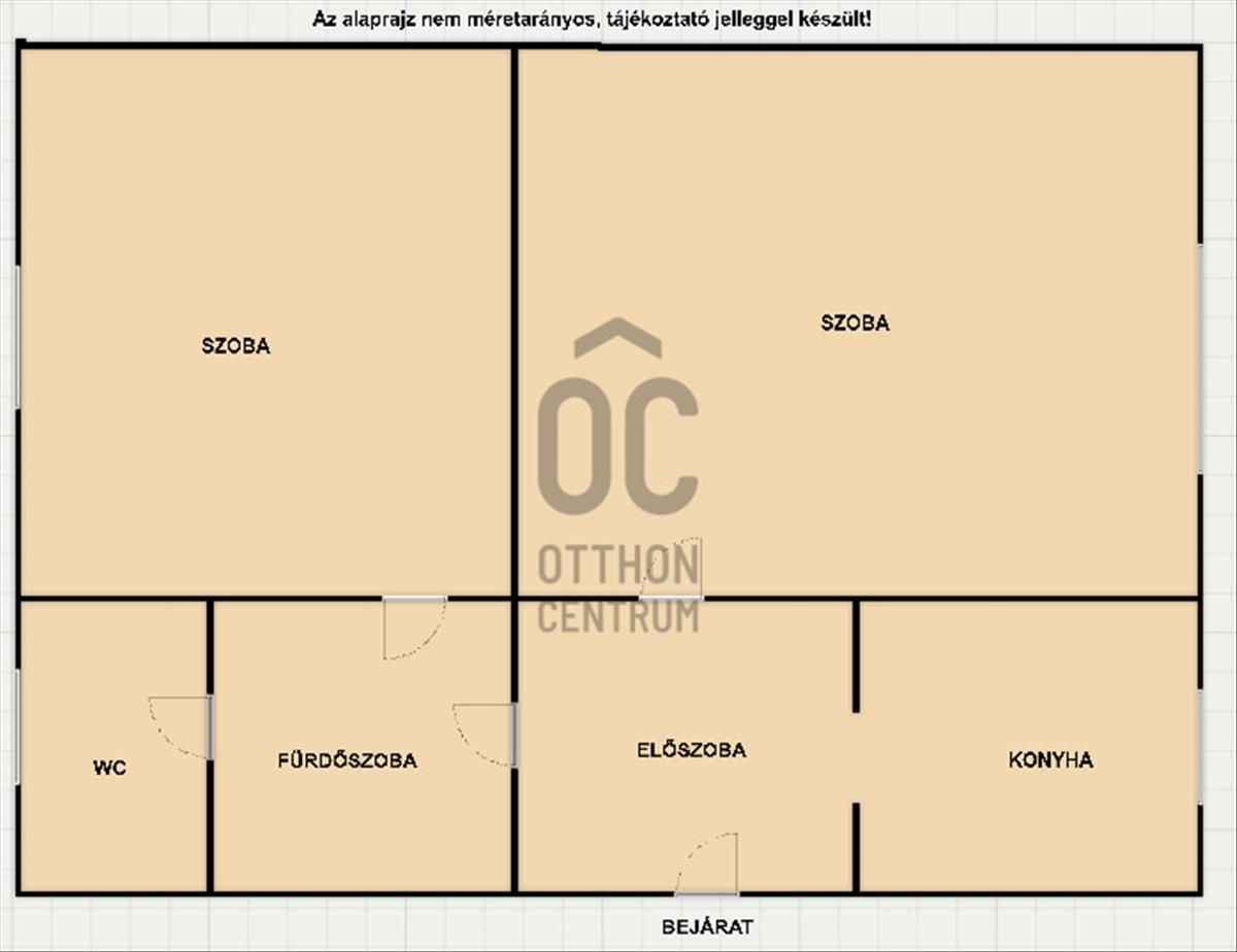 Előszoba, konyha, 2 szoba, fürdőszoba és külön WC.