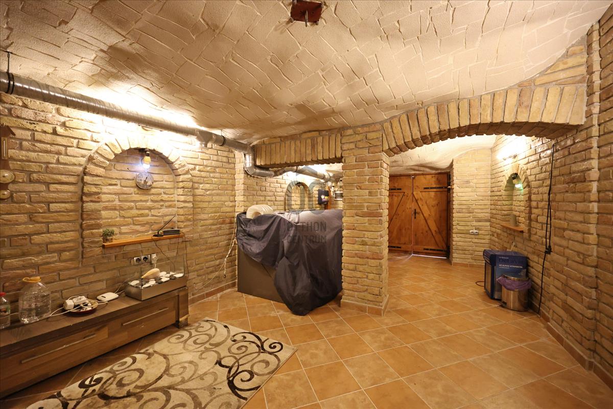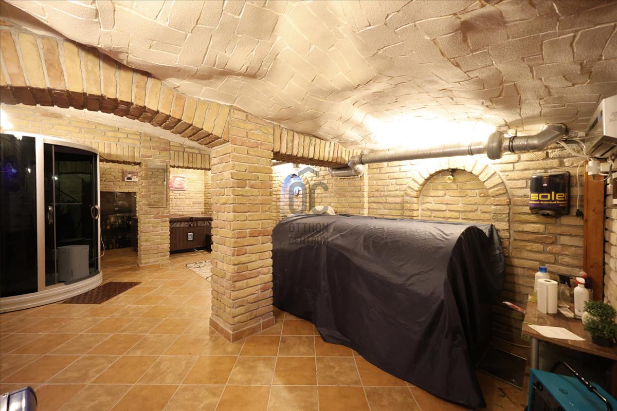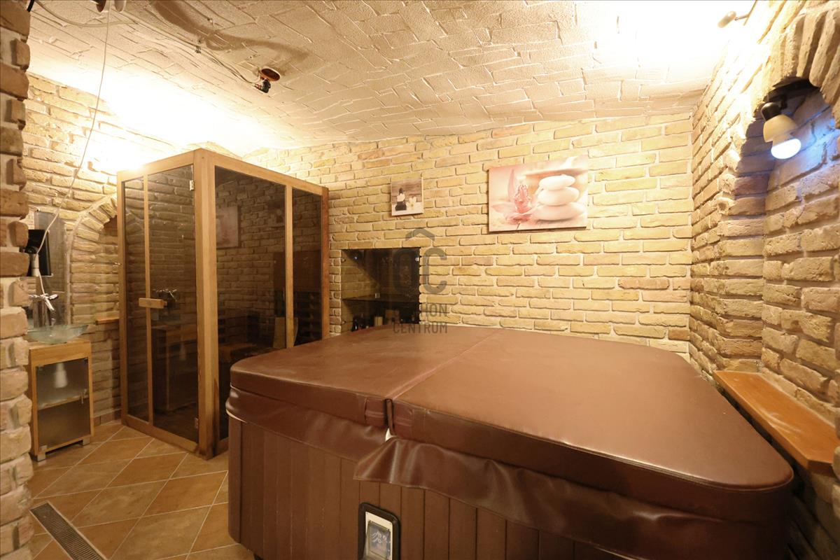 Ezen a szinten van még egy szintén pincéből kialakított wellness helyiség jakuzzival, zuhanyzóval, szoláriummal, infraszaunával.