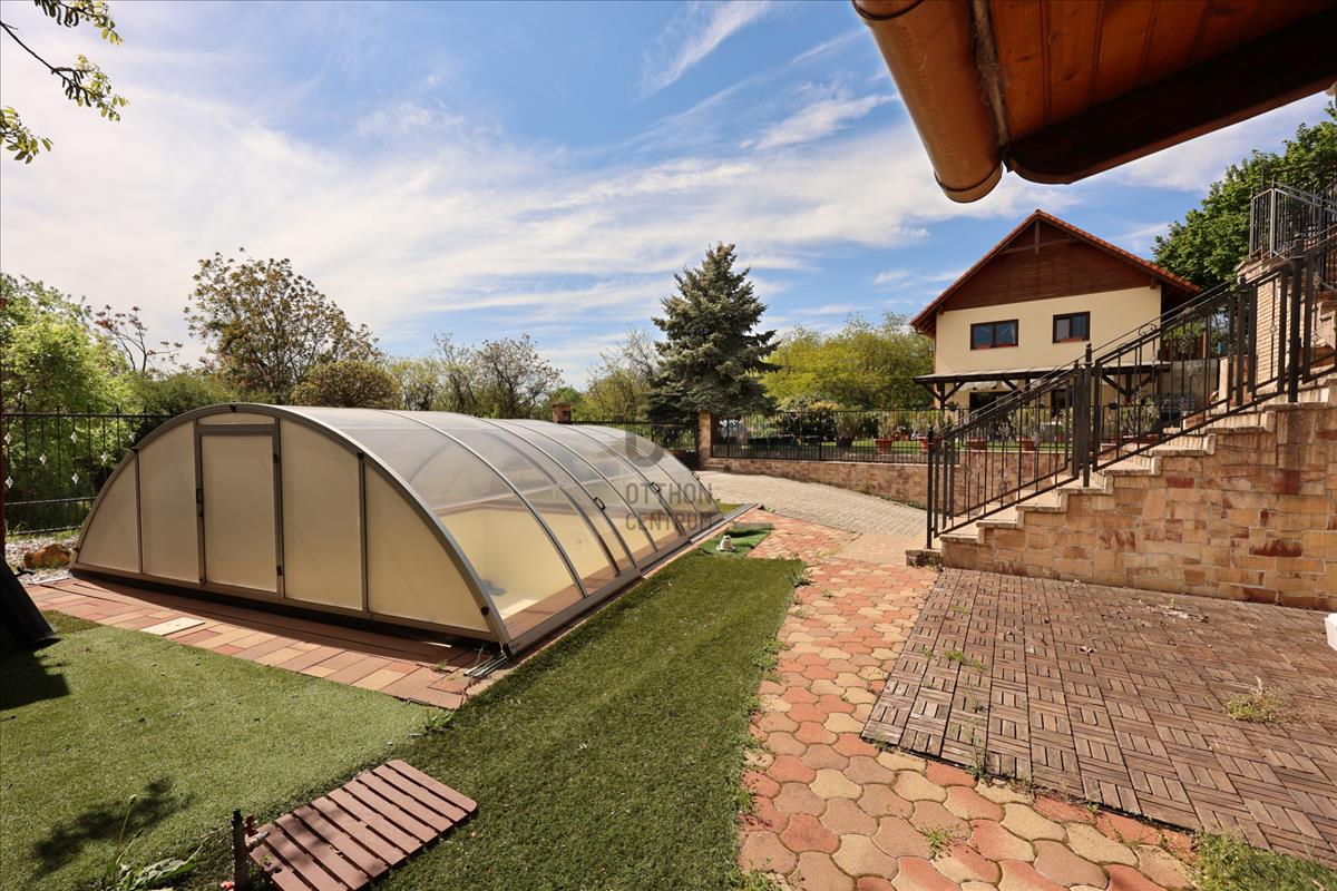 A parkosított, 731 nm -es telken található egy fedett, fűthető medence sóbontós szűrővel (nem igényel vegyszerezést)!