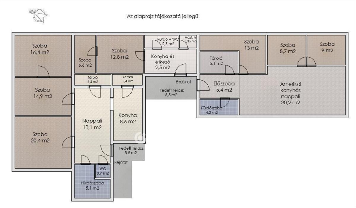 Az ingatlan összesen 8 szobával rendelkezik, így ideális választás lehet többgenerációs családoknak, bérbeadásra, vagy akár vállalkozás céljára is. a három lakrész külön mérőórákkal ellátott, ezáltal teljesen függetlenül használható.