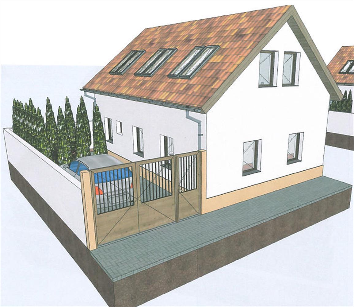 A ház praktikus elrendezésű, belső két szinten biztosít kényelmes életteret. Az alsó szinten egy tágas nappali, konyha és fürdőszoba kap helyet, míg a felső szinten két külön nyíló szoba és egy további fürdőszoba kerül kialakításra, így a lakótér ideális akár családok számára is.