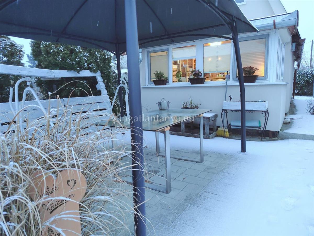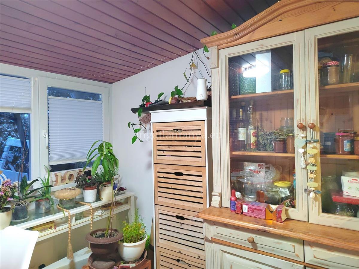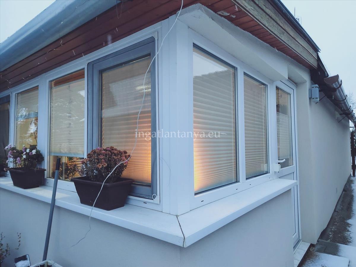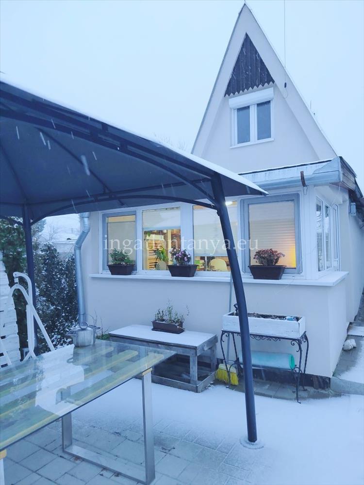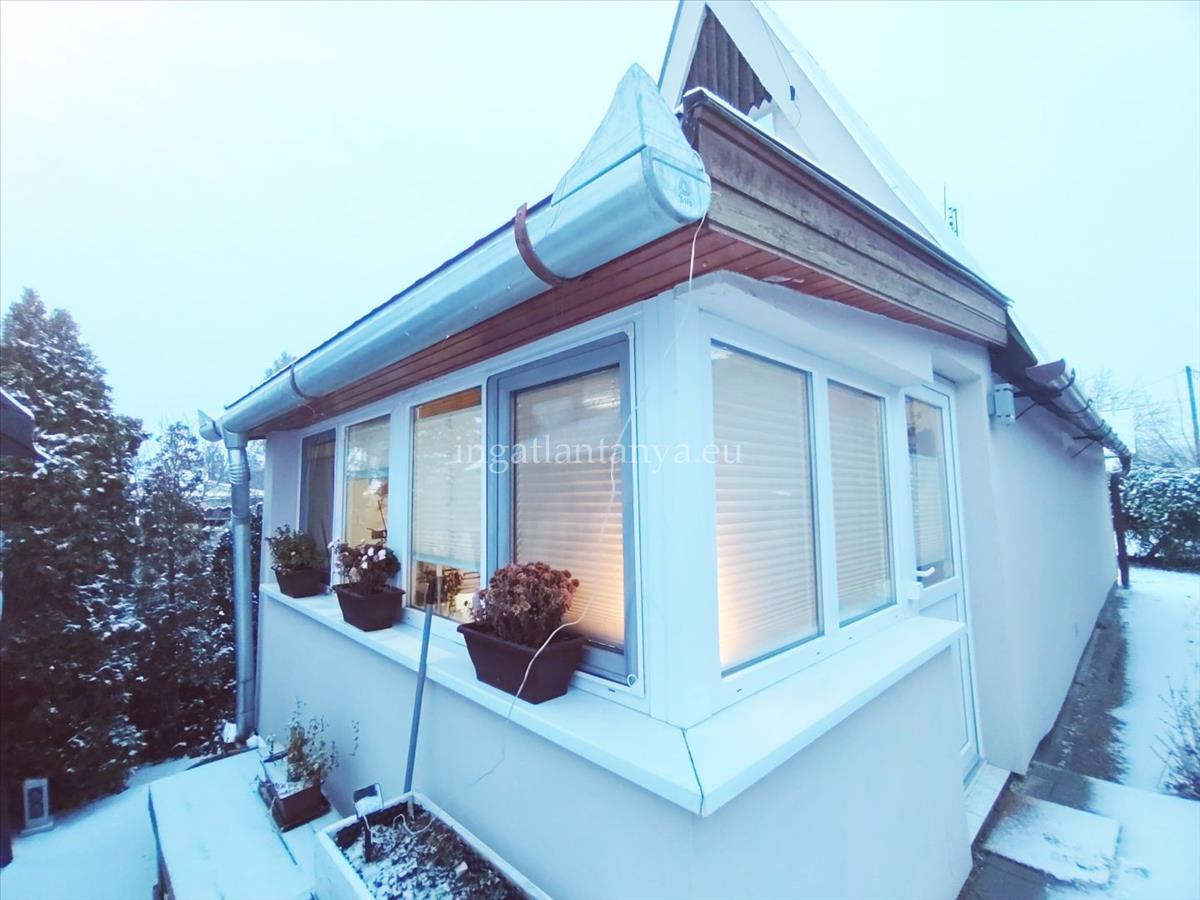 A házikó a telek hátsó részén helyezkedik el, könnyűszerkezetes, kívül 5 cm, belül 12 cm grafitos szigeteléssel. Nagyon jó a hőtartása a háznak. a nyílászárók mai modern műanyagokAz alapház az 1970-es években épült, majd 2022-ben teljes felújításon esett át. Az összes villany -és vízvezeték cserélve lett.