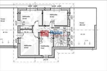 A másik három hálószoba mindegyike már az emeleten található. Ezen a szinten is van egy fürdőszoba, amelyben a Wc is ki lett alakítva. Az emelet két oldalán egy-egy hatalmas, 19 és 25 m2-es teraszt, amely akár közösségi események lebonyolítására is elegendő helyet kínál, akár külön-külön is.