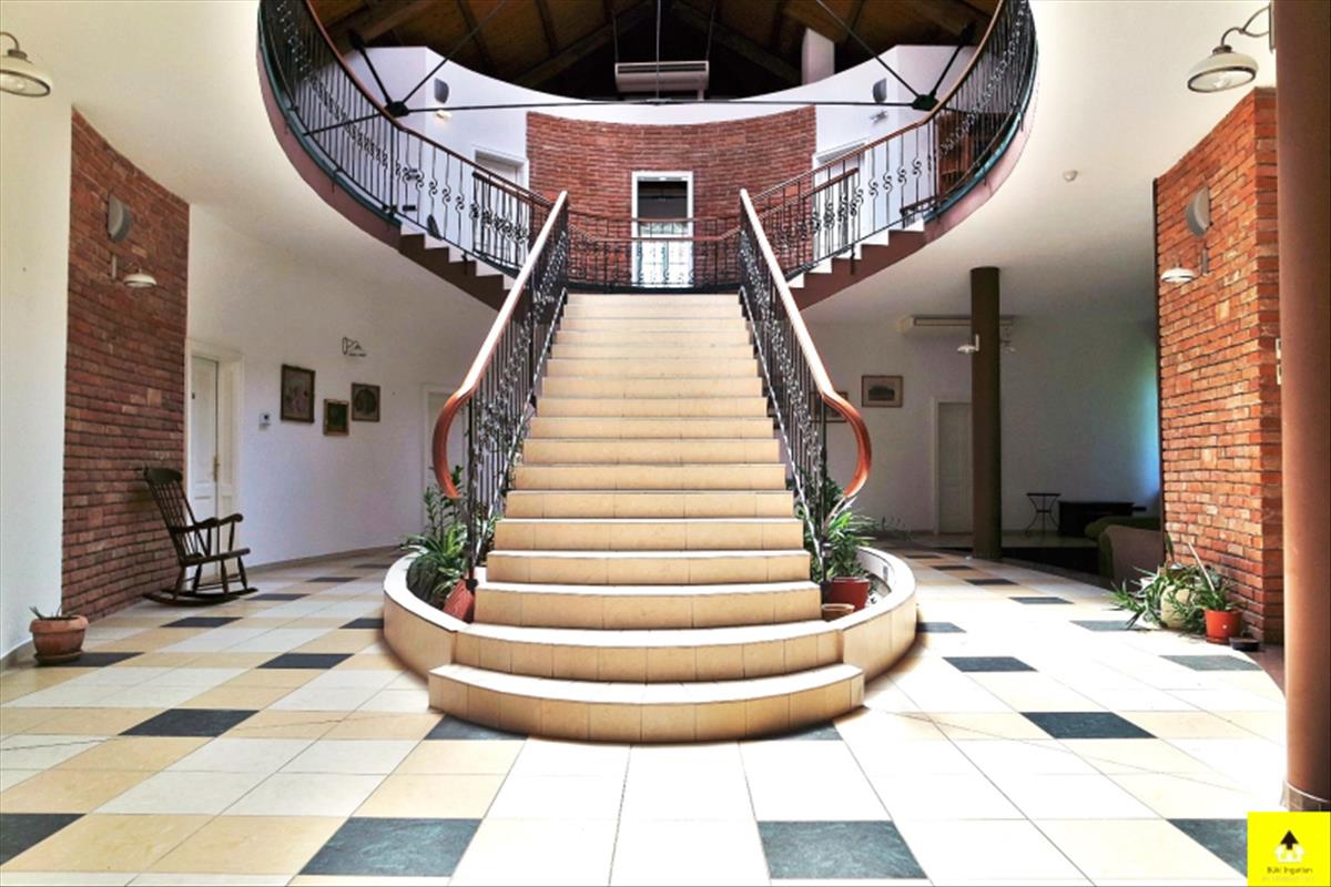 A földszint díszeként szolgáló impozáns lépcsőn felmenve a szintén 340 m2-es emeletre érkezünk, ahol közösségi térek fogadnak. Innen nyílnak a további helyiségek. Négy hálószoba, egy fürdőszoba, valamint egy tágas fedett terasz.