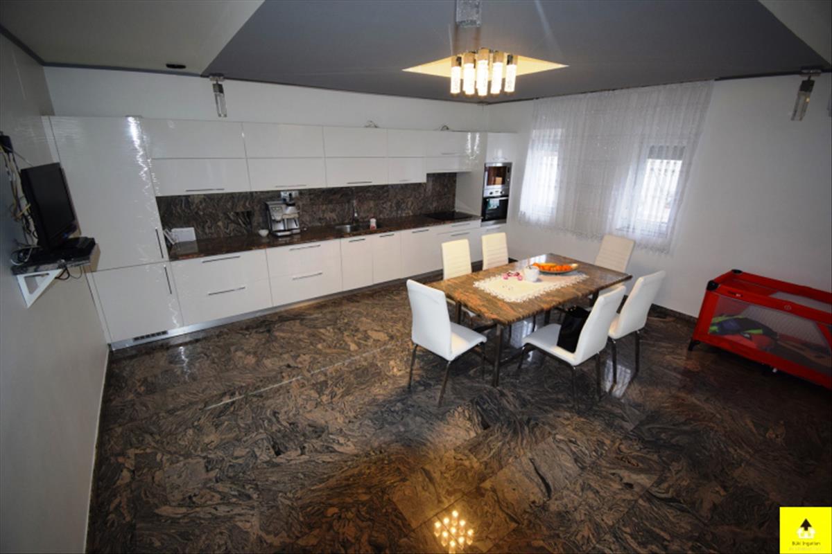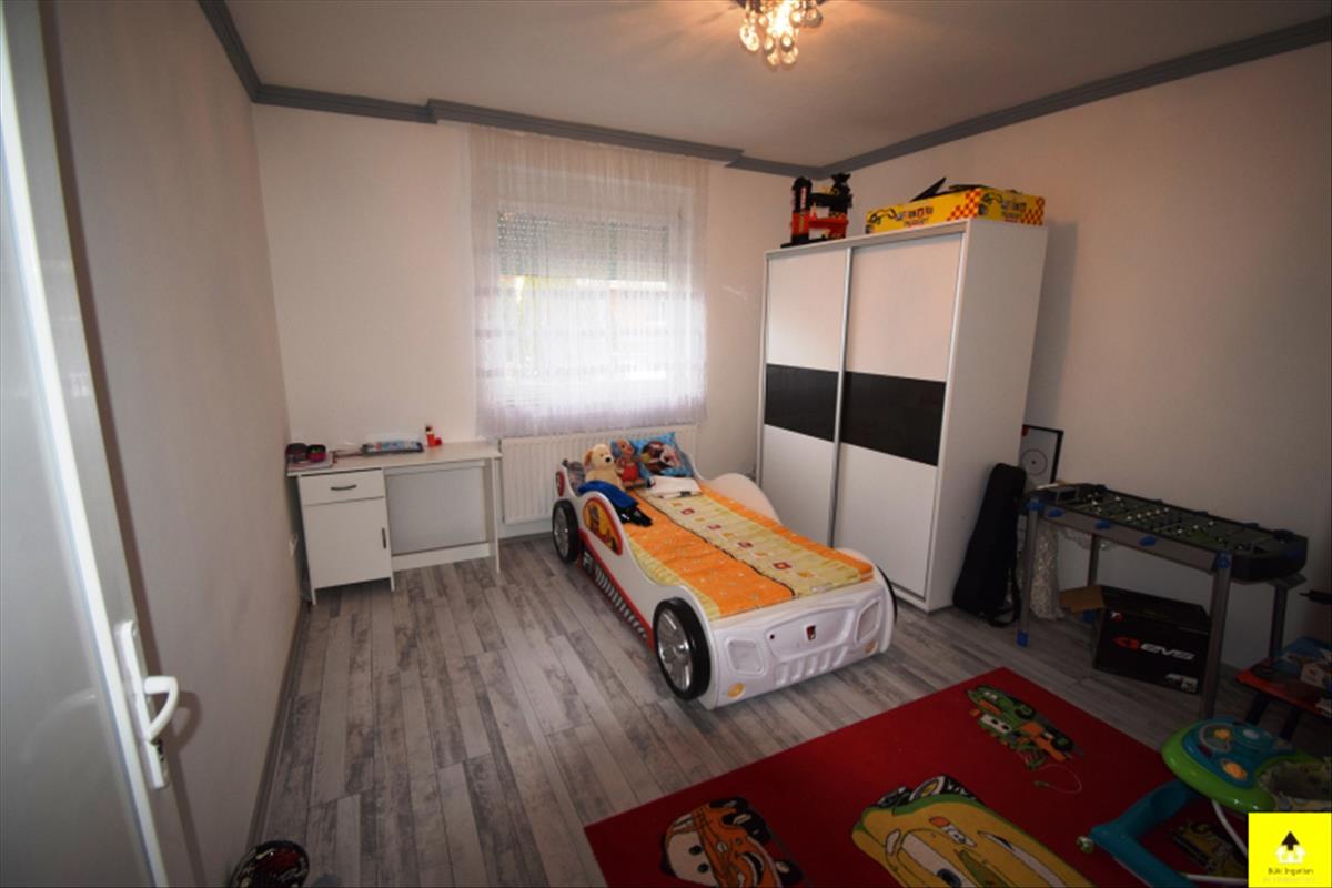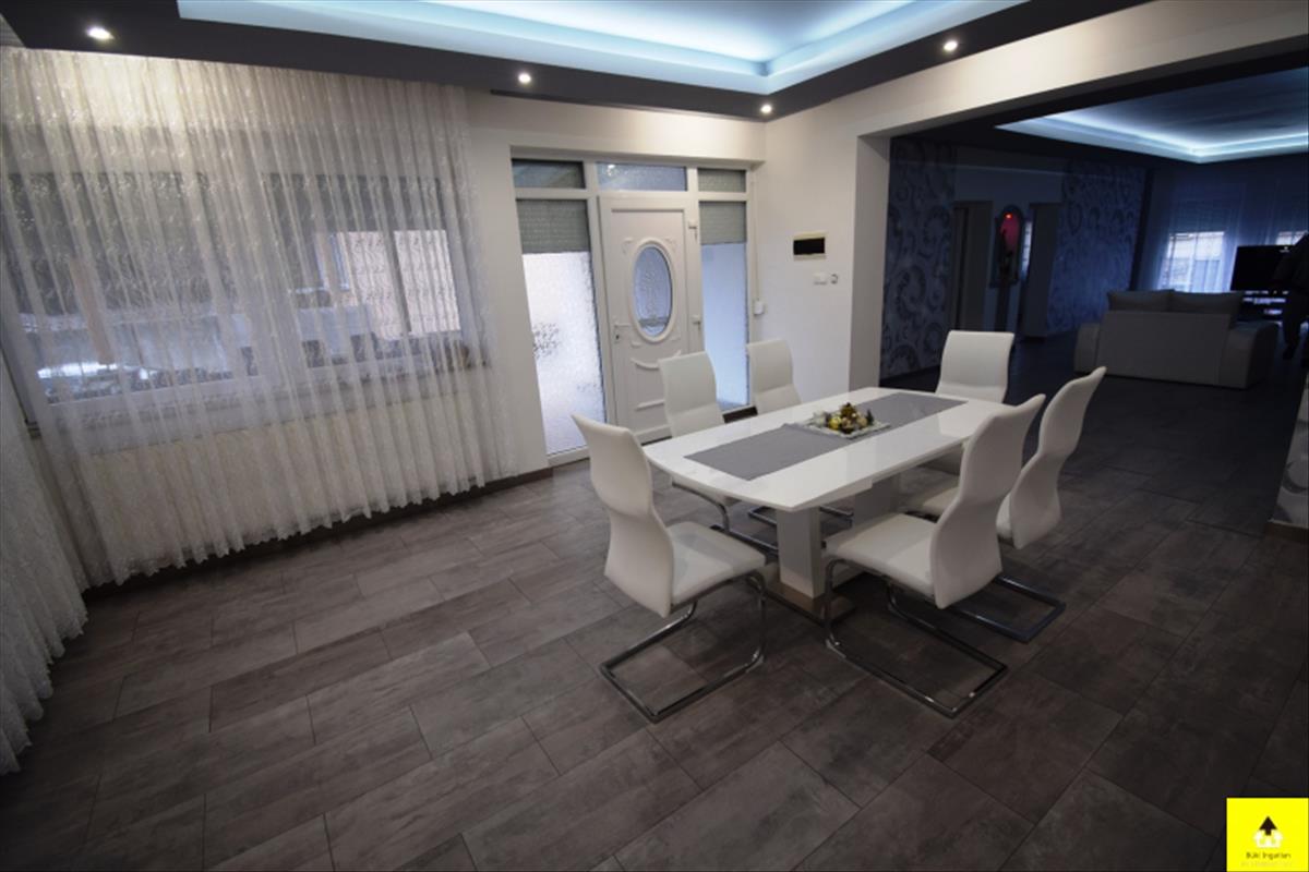 A ház Bük csendes részén helyezkedik el. Utcafronton 2 nagy méretű halószoba, tágas előtér, hatalmas fürdőszoba, hátrafelé haladva, egy háztartási helyiség, egy külön wc, egy óriási amerikai-konyhás nappali hűtő-fűtő klímával, valamint egy 30 m2-es fedett terasz kapott helyet. Az udvar egy része (kb. 150 m2-es) térburkolatos. Itt helyezkedik el a mintegy 25 m3-es medence, amely fedést is kapott. a ház első része (90m2) 1980-ban, a hátsó rész pedig (102 m2) 2021-ben épült. 2021-Ben az első részen is csak a falak maradtak, komplett felújításon esett át, az új tetőt is beleértve. a ház utcafronti része alatt száraz pince van. a ház kívül-belül teljesen újszerű, igényesen kialakított. Tágas, világos belső terek jellemzik. Korszerű építési technologiájának köszönhetően, alacsony rezsivel fenntartható. Kisebb értékű ingatlan, vagy nagyobb értékű autó beszámítására is van lehetőség. FIX 3% lakáshitelre megvehető