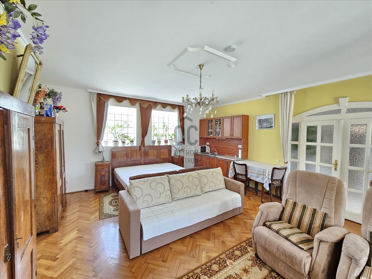 Ez a használt téglaépítésű ház 426 négyzetméteres alapterülettel és 2020 négyzetméteres gondozott telken helyezkedik el. Az épületegyüttes egy kisebb, régebbi és egy nagyobb, újabb épületből áll, amely további bővítési és beépítési lehetőségeket kínál.