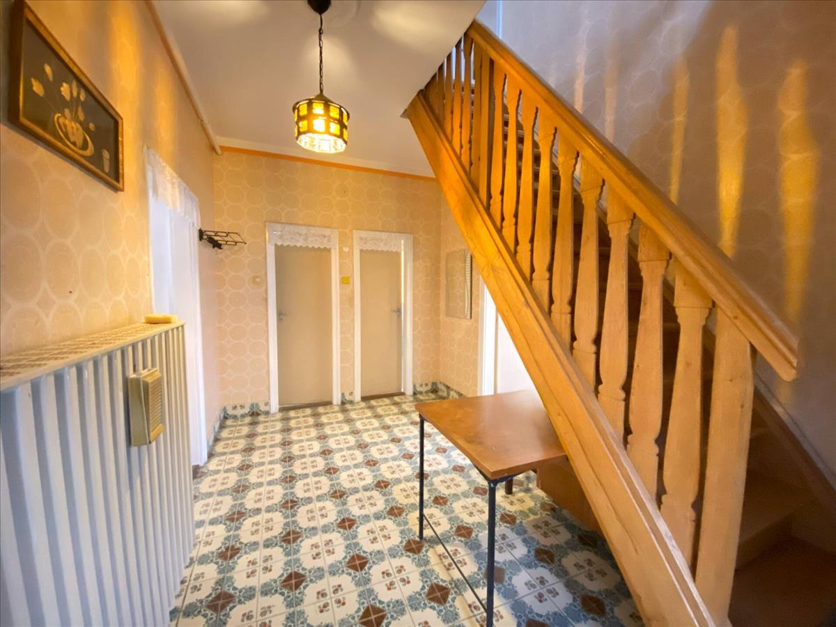 A nagy előtérbe lépve közvetlenül elérhető a szép állapotú, esztétikus emeletre vezető lépcső.