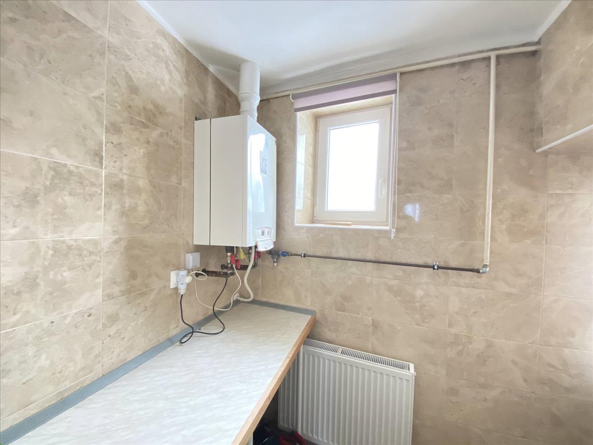 A kisebb lakrészben is ugyanez a gázkazán szolgálja ki a melegvíz igényt és radiátoros hőleadással a fűtést is.