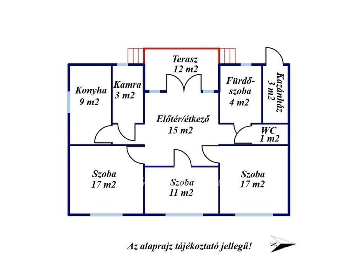 -Helyiségek: 3 szoba, fürdőszoba, külön wc helyiség, konyha, előszoba és kamra