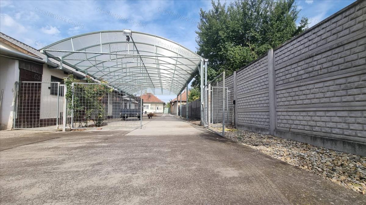 Az udvar legalább 80%-át, 30 cm-es térbeton borítja, melyen akár teherautók mozgása is lehetséges. a 145 nm alapterületű ipari árammal, szociális helyiségekkel, vizesblokkal ellátott, fűthető műhely/szerelőcsarnok előterében, mintegy 85-90 nm-es fedett beálló áll.