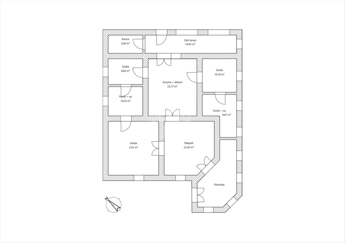 Elrendezés: Tágas nappali + 3 szoba, 2 fürdőszoba