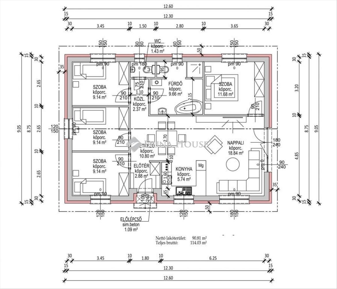 Új építésű családi ház kulcsrakészen Ceglédbercelen, Iskola utcában. Eladó egy 90m2-es családi ház, nappali + 4 szoba, nagy méretű, 1122 m²-es telken - az ár a telekkel együtt értendő! Ár: kulcsrakészen, terasz, konyhabútor és lámpatestek nélkülKiemelt előnyök:-ELŐFINANSZÍROZÁS lehetősége csak az elkészült ütemek után kell fizetni. -ÁRGARANCIA és kötbér vállalás a kivitelezőtől-Energiahatékony fűtés: bosch 3400 prémium levegő-víz hőszivattyú, vizes padlófűtéssel-3 rétegű prémium nyílászárók, választható belső burkolatok és ajtókMűszaki tartalom:Teherhordó falazat: Wienerberger Porotherm 30 N+FHomlokzati hőszigetelés: 15 cmTetőhéjazat választható: Leier Toscana tetőcserép választható színbenKülső nyílászárók: 3 réteg üvegezésű, kívül antracit, belül fehér prémium Gealan s8000 külső nyílászárók, 36 mm-es üvegezéssel + antracit, alumínium redőnyök + antracit műkő párkányVálaszfal: Wienerberger Porotherm 10 tégla válaszfalBejárati ajtó választható: Colorplast standard betéttelTeraszajtó: Dupla szárnyasBeltéri ajtó: Borovi Szicília (dekorfóliás) választható színbenHidegburkolat választható: 6. 500 Ft / m2Melegburkolat választható: 6. 000 Ft / m2Szaniterek választható: (kád, zuhanykabin, csaptelep stb. ) 460. 000Ft-igGépészet: Bosch 3400 levegő-víz hőszivattyú vizes padlófűtésselAz ár kulcsrakész állapotban történő átadással értendő, konyhabútor és lámpatestek nélkül! Közművek:Gáz: nincsVillany: ingatlanbanCsatorna: ingatlanbanVíz: ingatlanban
