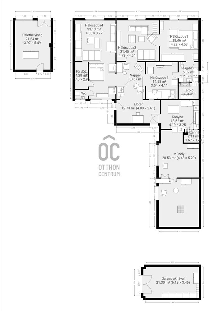 A ház mellett egy közvetlen utcafronti, 20 m²-es melléképület található. Ez a helyiség korábban boltként üzemelt, így felújítás után kiválóan alkalmas saját vállalkozás indítására, bérbeadásra, de akár egy második garázzsá is alakítható.