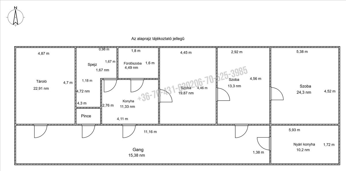 A belső térben: 3 szoba, konyha, spejz, fürdőszoba került kialakításra. Az épület mindkét bejáratánál fedett teraszok állnak.