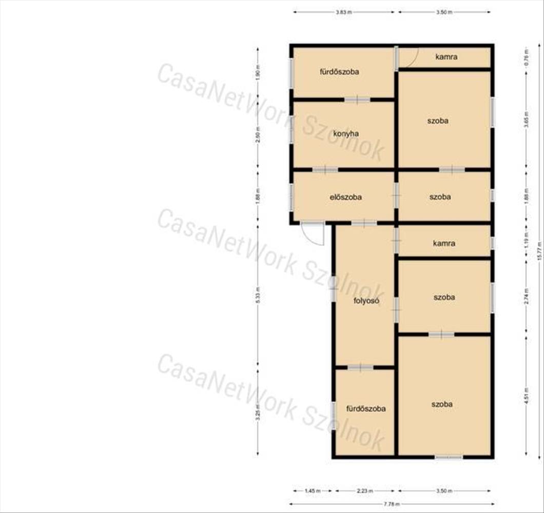 - a később hozzáépített házrészben közlekedő, kamra, fürdőszoba és 2 külön nyíló szoba található