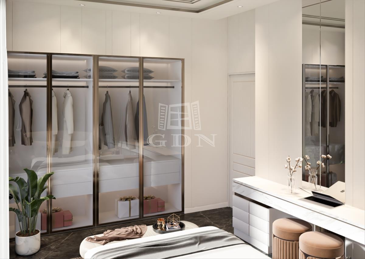 Gardrób, fürdőkád és terasz a fő hálószobában