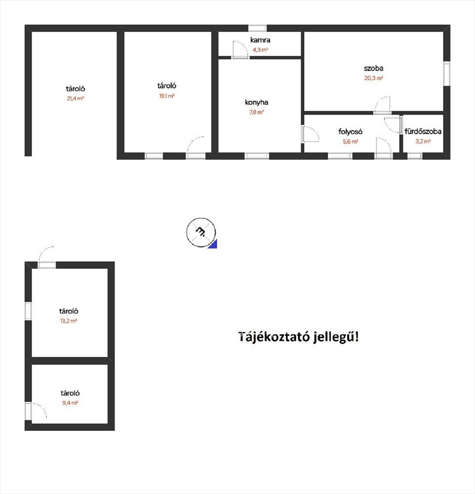 Az ingatlan helyiségei: szoba, konyha, fürdőszoba, folyosó és kamra. a ház igény esetén hátrafelé bővíthető. a fűtés jelenleg kályhákkal megoldott.