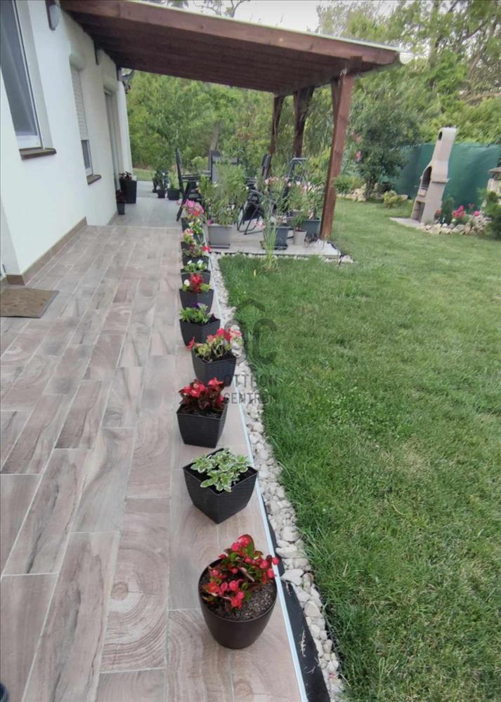 A telken elhelyezkedik egy 24m2-es garázs, tárolók, térköves kocsibeálló és egy gyönyörű járólapos terasz.