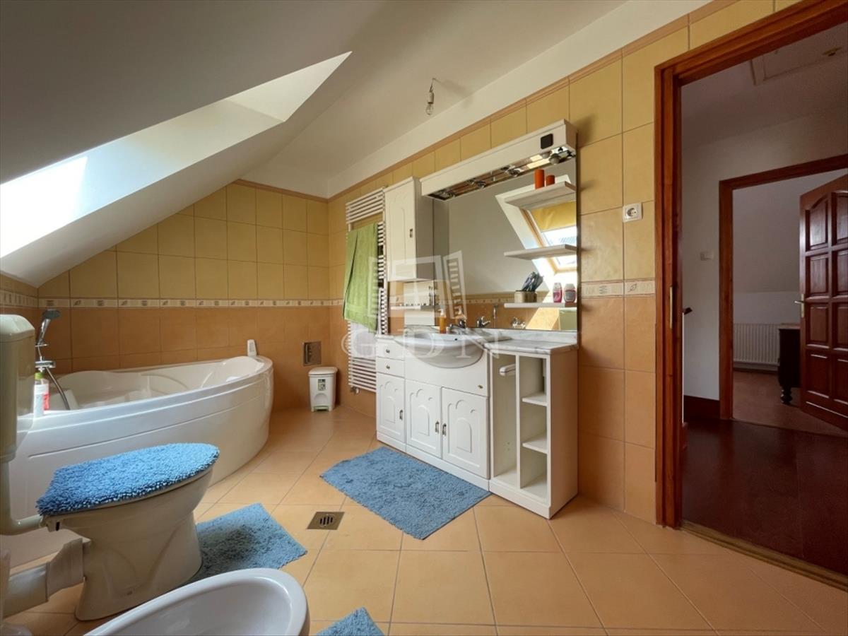 -Tetőtér: Egy tágas falépcső vezet az emeletre, amely tetőtér: egy kisebb előtérről nyílik a 3 szoba, hatalmas fürdőszoba sarokkáddal, wc, bidé.