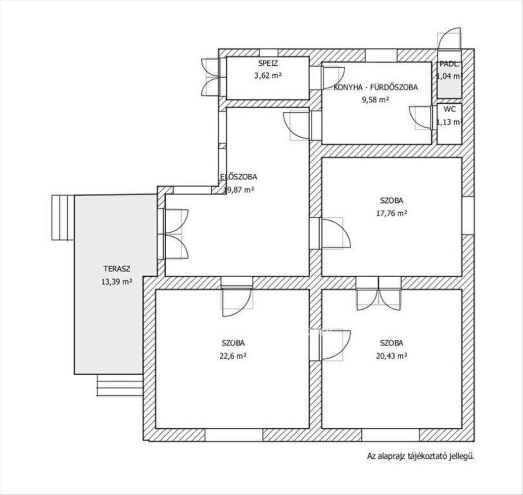 A vegyes falazatú 91m2-es lakóépületben egy tágas előszoba, 3 szoba, konyha, fürdő, wc, kamra kapott helyet, az előszobához egy 13m2-es fedett terasz kapcsolódik. a konyha alatt egy tárolásra alkalmas pince található. a ház felújítást igényel, korszerűsítés után értékes ingatlan válhat belőle.