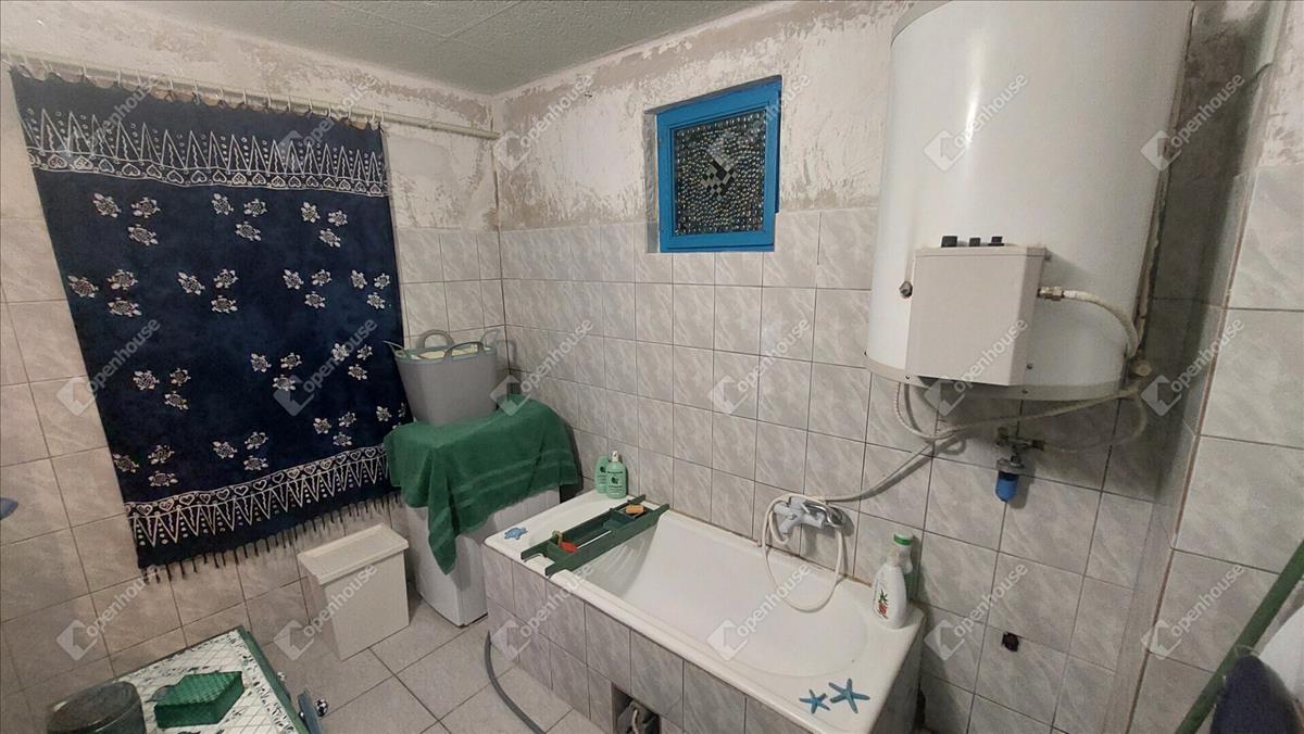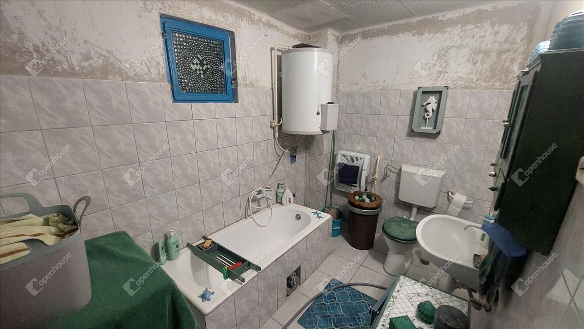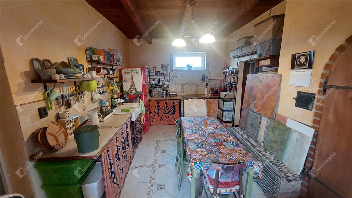 A konyha egyedi hangulatát a téglából épített, rusztikus jellegű konyhabútor-alap adja. a beépített sütő és főzőlap a vételár részét képezi, valamint a stílusban hozzá illő csaptelep és mosogató is beépítésre került. a melegvizet gázbojler biztosítja. a fürdőszoba nagyméretű káddal felszerelt.