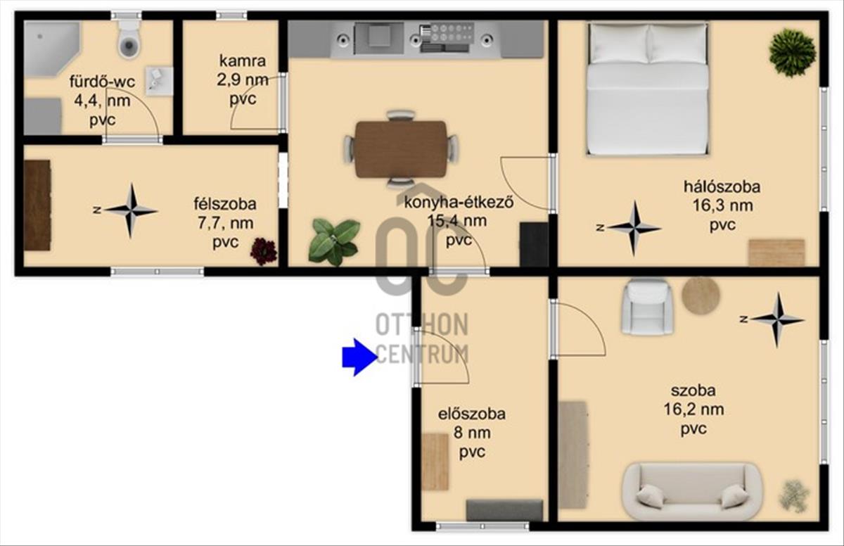 - 2 és egy fél szoba