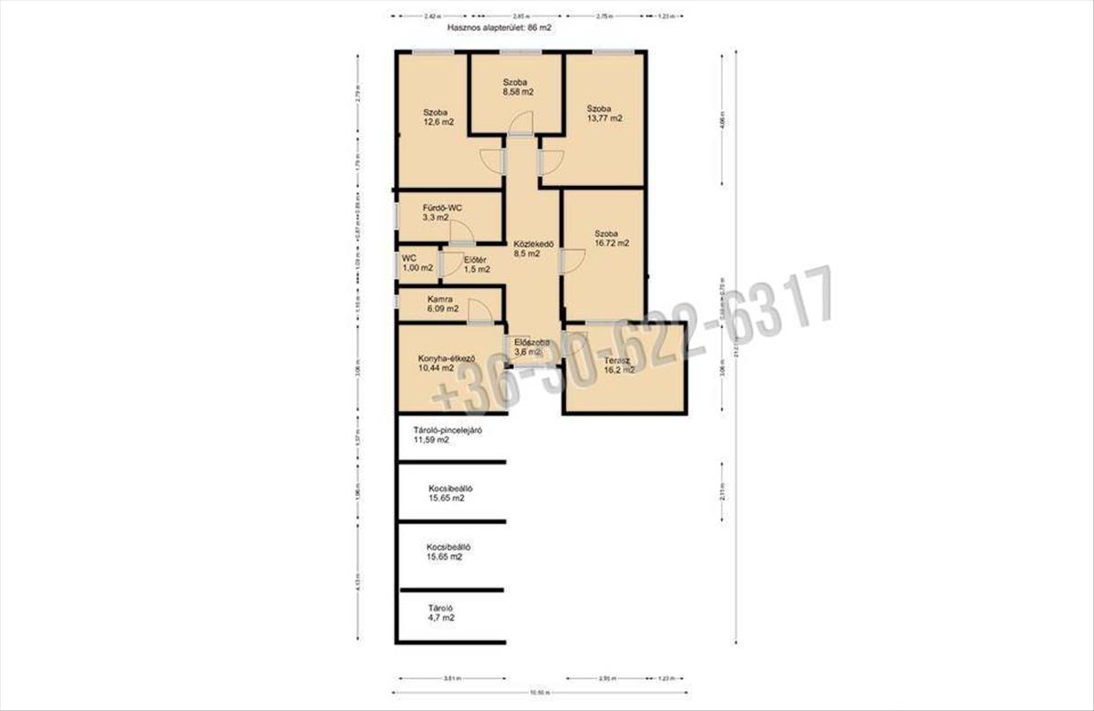 - Telek: 1537 m², sík, parkosított (közművek: víz, villany, gáz, emésztő)