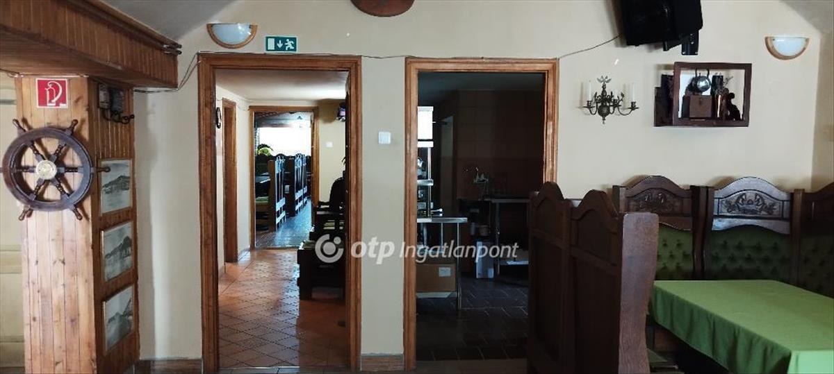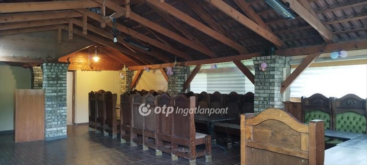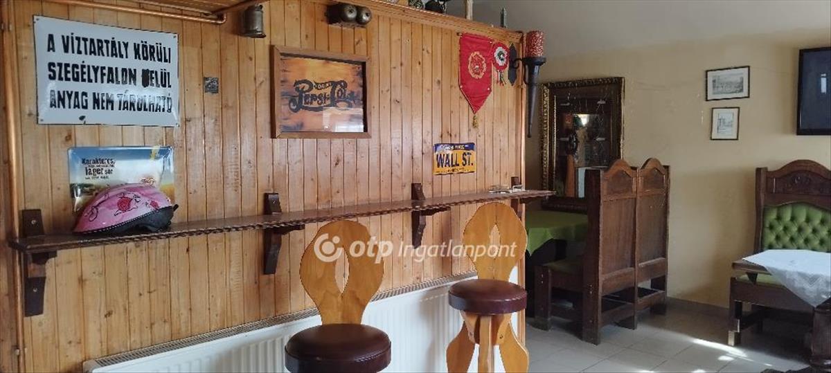 A hozzá tartozó üzlethelyiség korábban vendéglőként és sörözőként működött, és a benne található, kézzel készített, kiváló állapotú bútorok az ingatlan részét képezik ezek tökéletesen illeszkednek a hely hangulatához. Elöl egy fedett és egy nyitott terasz is található, ami ideális szabadtéri vendéglátásra. Az épületben elől található egy vendégtér bárpulttal, konyha raktárral, egy személyzeti mosdó, valamint egy külön közlekedőfolyosó, ami összeköti a vendégteret és a rendezvénytermet, és innen érhetők el a női és férfi vendégmosdók. a vendéglő három külön bejárattal is rendelkezik, ami nagyfokú rugalmasságot biztosít az új tulajdonos számára.