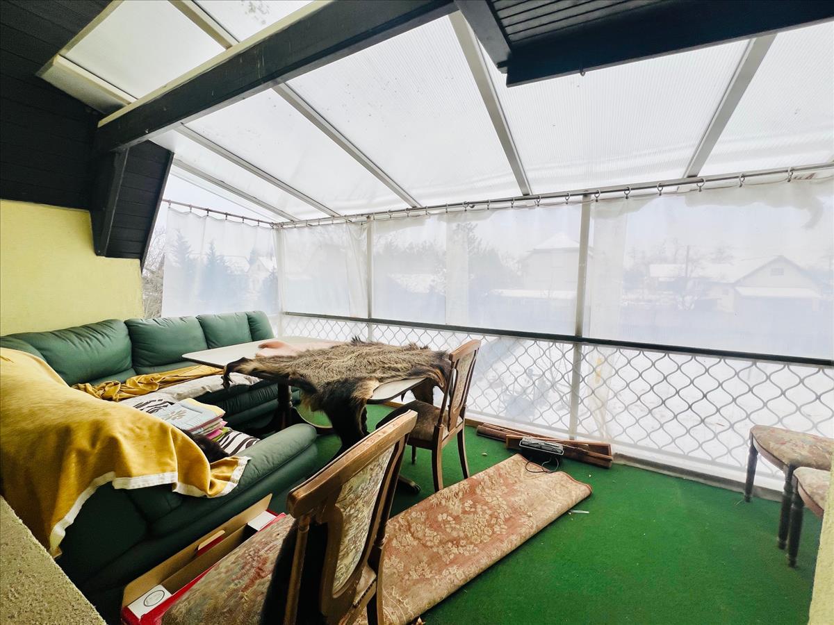 Cserkeszőlőn eladó egy tégla, illetve fa építésű, tetőtér beépítéses családi ház csendes, nyugodt, zöld övezetben! Az 1980-ban épült ház teljesen szigetelt, az új tetőn 30 cm szigeteléssel ellátva, illetve az oldalfalak 15 cm szigetelésűek. a tetőt 2022-ben újították fel. Közművek közül a víz és a villany megtalálható az ingatlanban, gázcsonk pedig a kertben, csatorna még nincs. a tetőn napelemek találhatóak, így az elektromos áram díja szinte nulla. a fűtés hűtő-fűtő klímával működik. a kertben fúrt kút található locsoláshoz. Az ingatlan 91 nm, amelyből a földszint 40 nm, ahol megtalálható egy konyha étkezővel, illetve egy fürdőszoba WC-vel, egy közlekedő és egy nagyon nagy kamra. a tetőtér beépítésével még két szint lett kialakítva. Az első szint 30 nm, ahol egy nappali, egy gardrób szoba, egy nagy fedett terasz WC-vel, és egy erkély található. a második szint 21 nm, ahol 2 szoba található. a fedett terasz téliesítésével még növelhető a fűthető alapterület. Maga a telek 550 nm, teljesen körbekerített. Az udvaron fedett autóbeálló található. Az ingatlan bútorozottan kerül eladásra, teljesen tehermentes! a központ kb 800 m, a gyógyfürdő pedig 500 m-re található. Az ár alkuképes! FIX 3% lakáshitelre megvehető