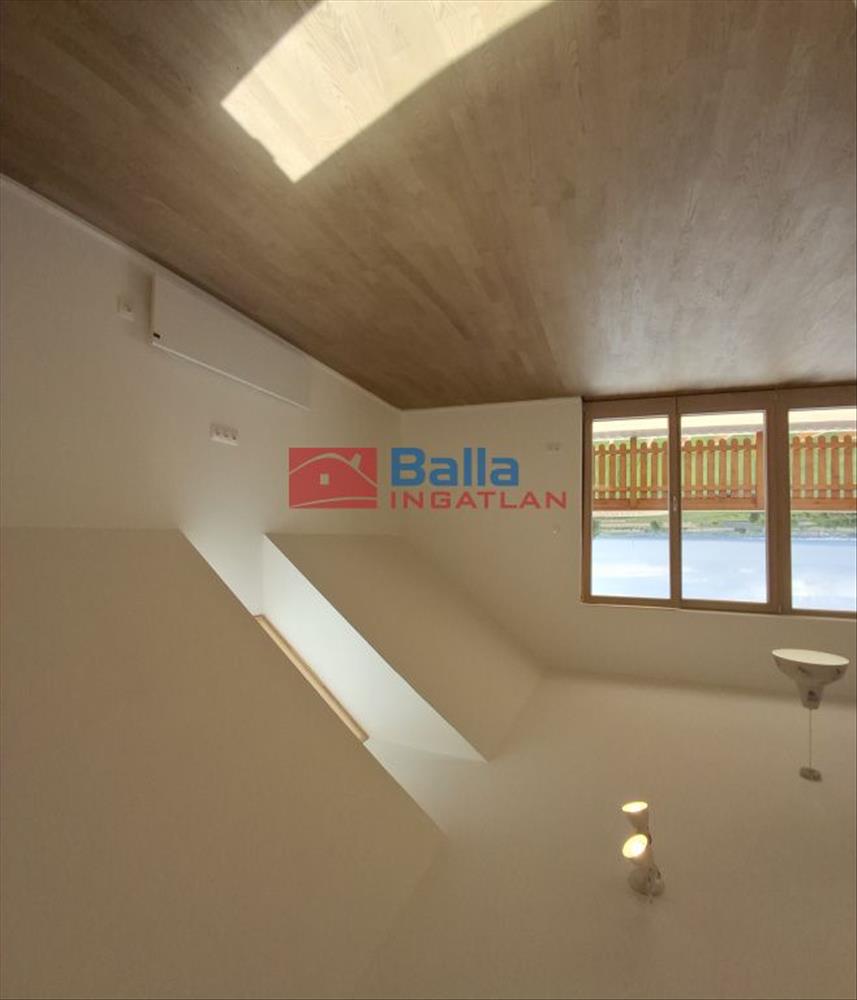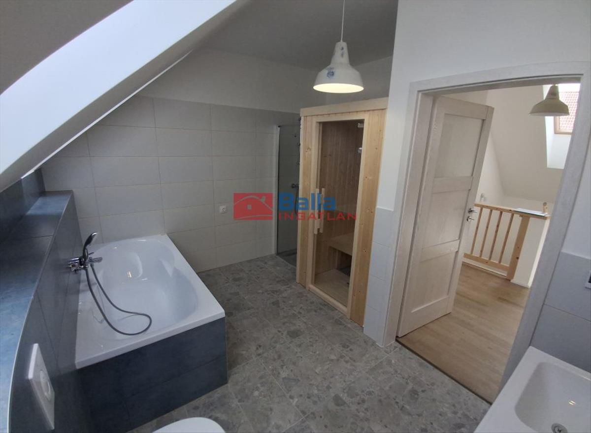 Emeletén (69. 3 m2) 3 szoba, kádas fürdőszoba szaunával, előtér, 8. 38 m2 erkély balatoni panorámával, akárcsak a földszintről.
