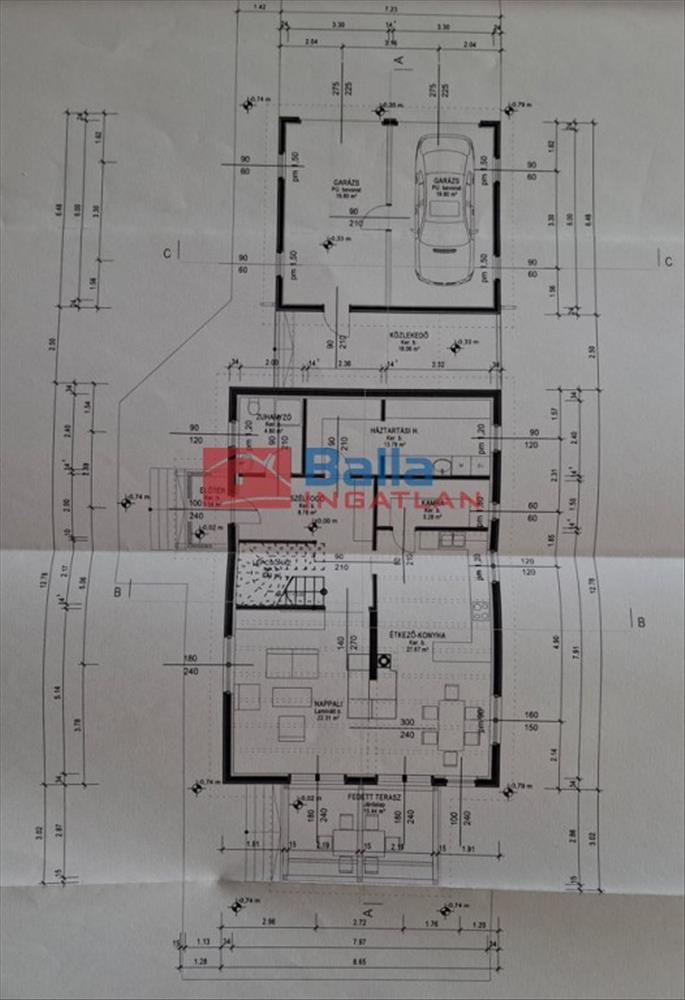 A kényelmet tovább fokozza a lakótér előtti 40 m2 duplagarázs, ahol akár elektromos autó töltésére is lehetőséget ad a 3x25 Ah áramellátás. a víz, csatornarendszer, áram közmű a garázsba is bevezetésre került, gondolva a sokoldalú felhasználhatóságra a későbbiekben.