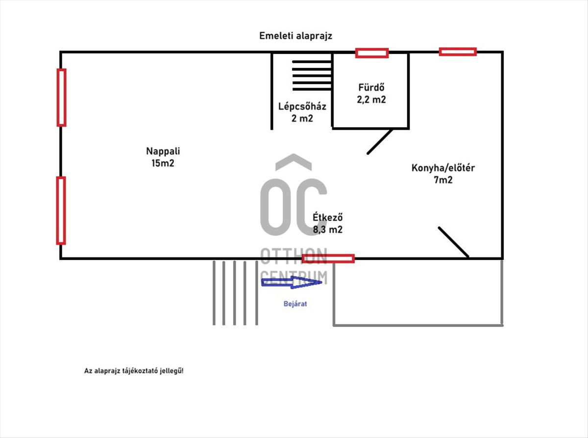 Felső szint (36 m² – külső lépcsővel megközelíthető):