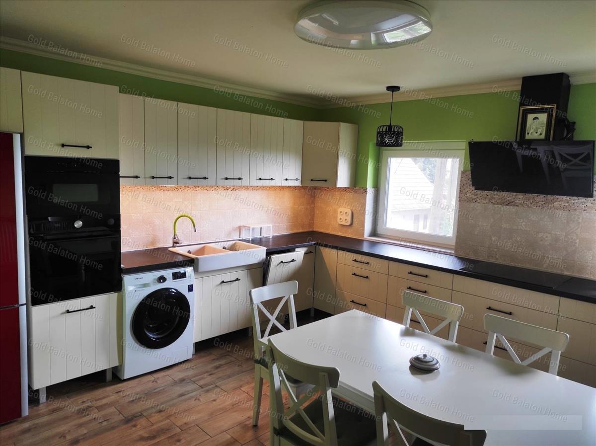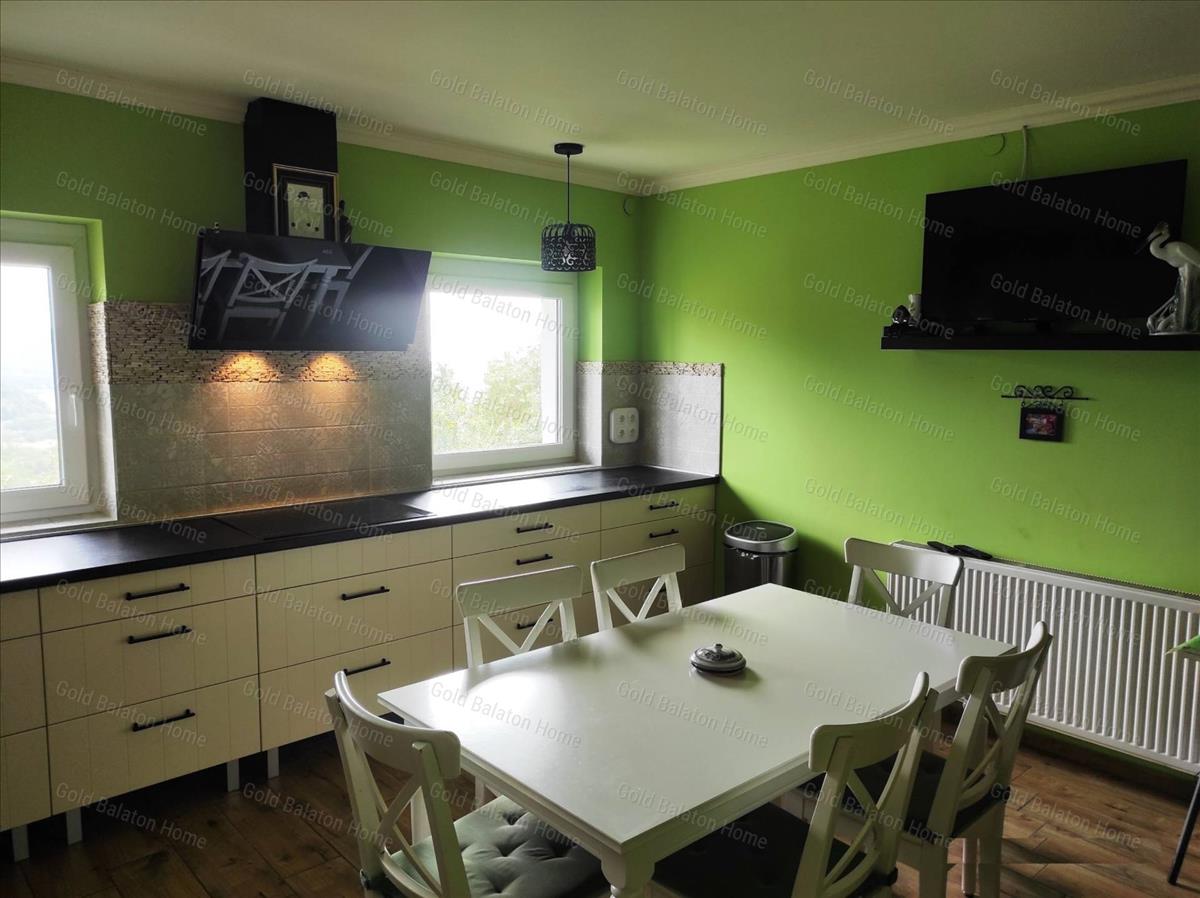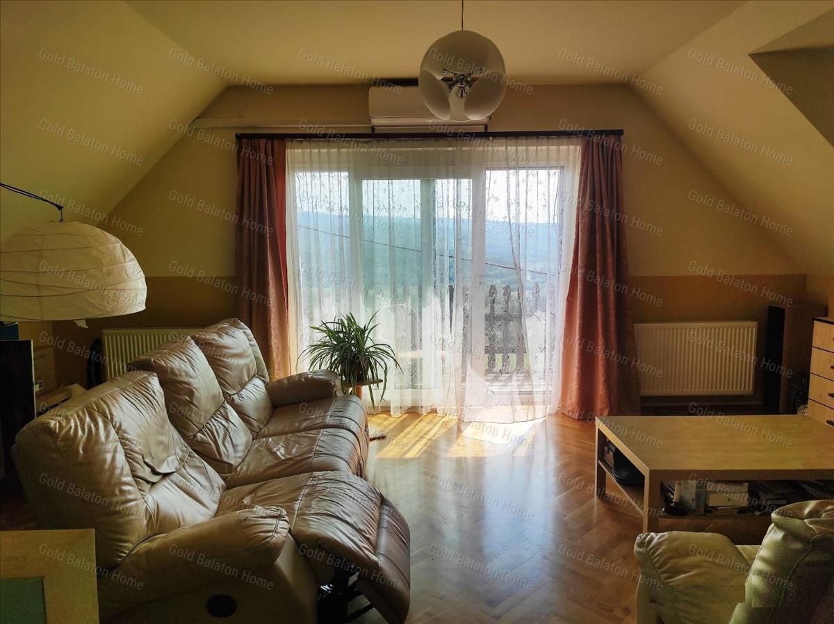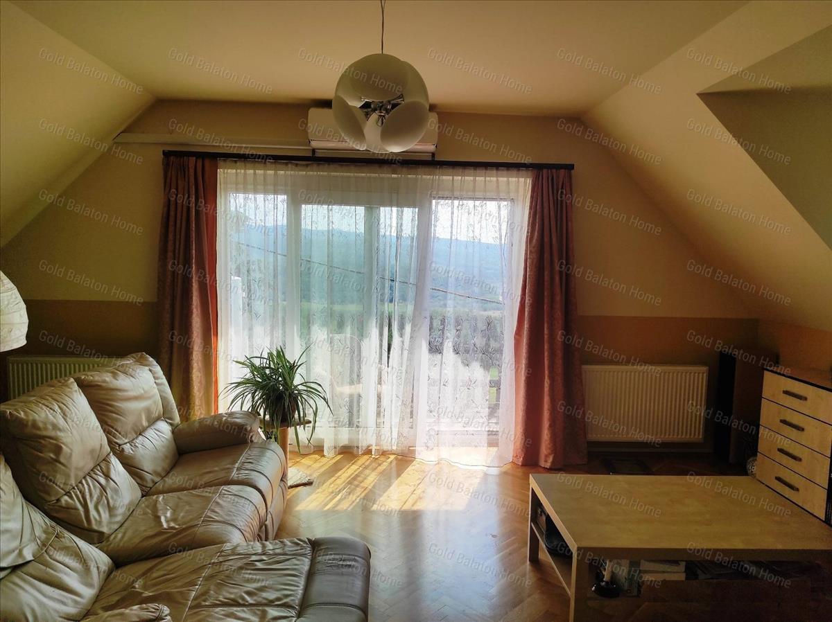 Balatoni panorámás, kétszintes családi ház 1 nappalival, 4 hálószobával, 2 fürdőszobával, erkéllyel, terasszal, nagy boltíves pincével eladó.