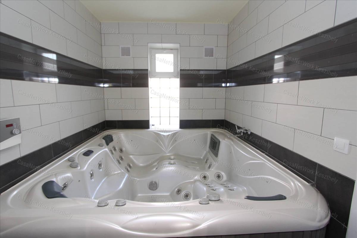 négyszemélyes jacuzzi, nagyméretű garázs, 2 terasz került kialakításra, a