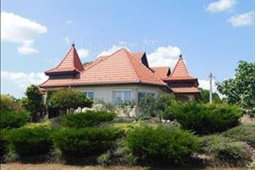 Egyszintes, egyedi stílusú balatoni panorámás családi ház 2060 m2 –es telekkel eladó. a lakóépület földszintes, magas tetős, a padlástér beépítetlen