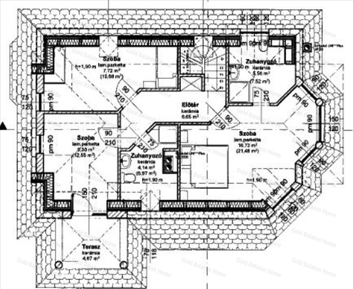 - emelet: 3 hálószoba, 2 fürdőszoba, közlekedő, erkély