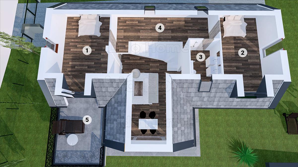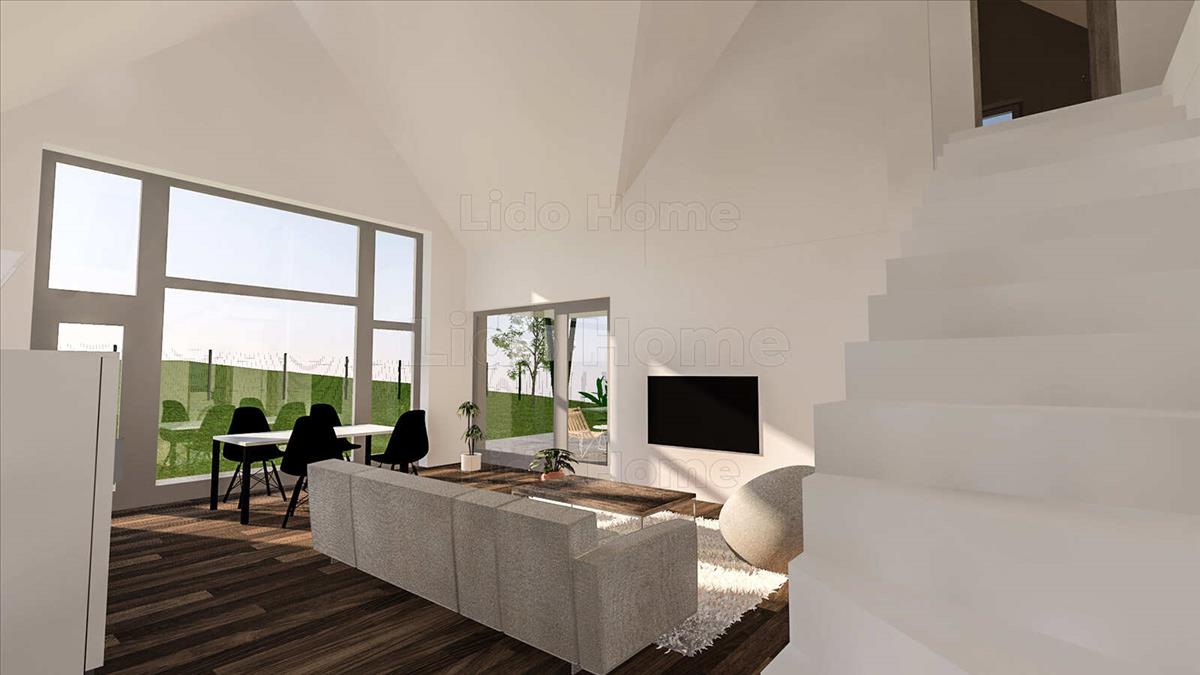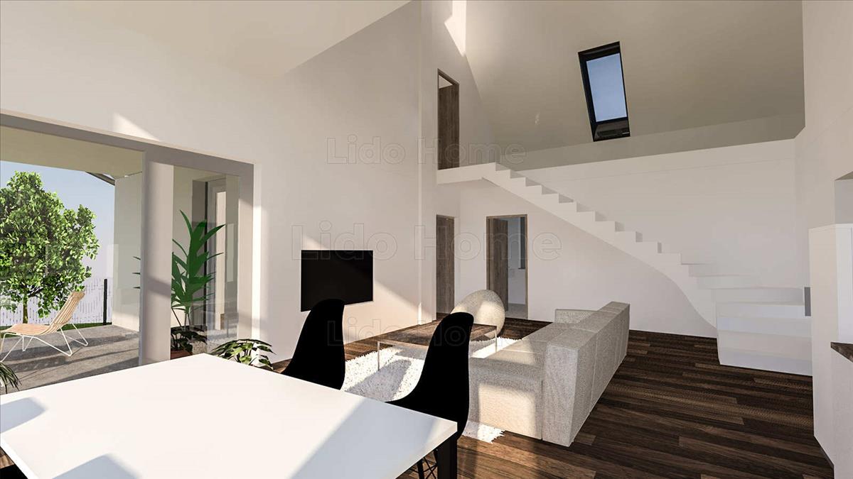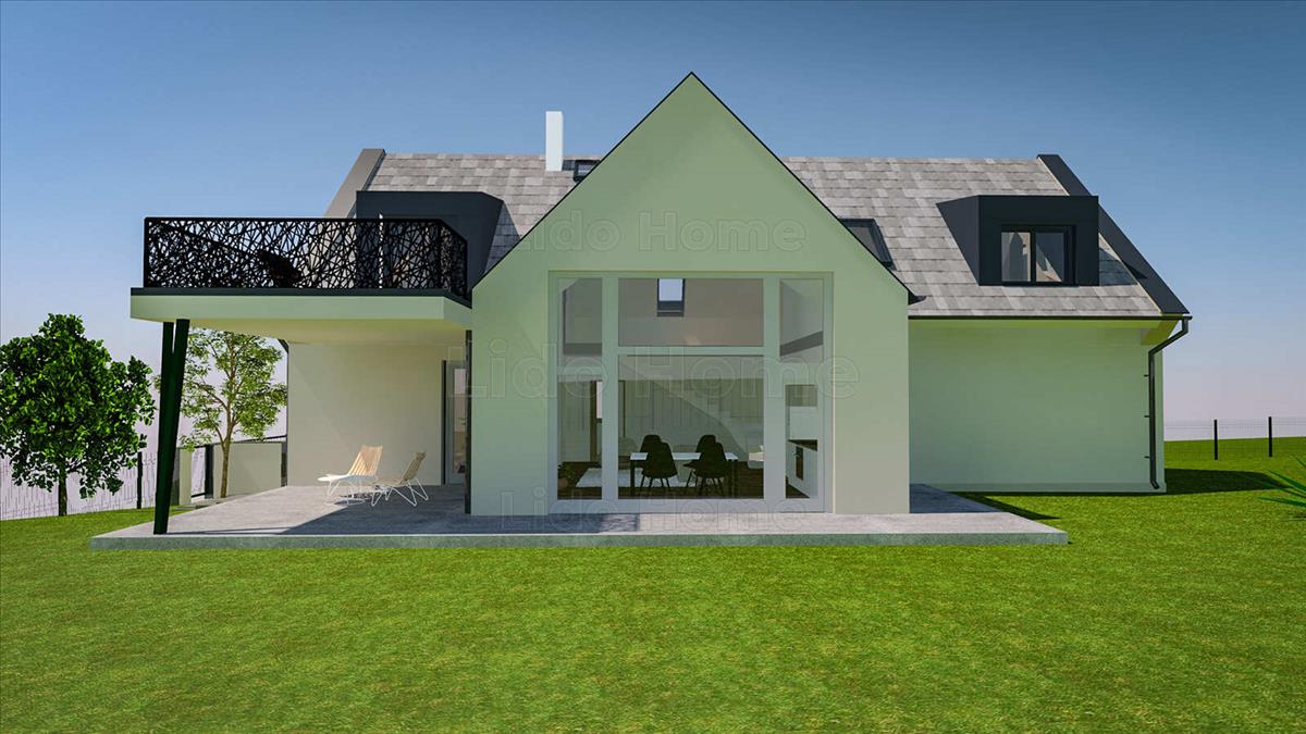A 166 m² lakótérhez további 55 m² terasz és erkély tartozik, így a ház minden évszakban élhető, tágas tereket biztosít. a kivitelezés modern, energiatakarékos, a befejezés várhatóan 2024. 4. Negyedév.
