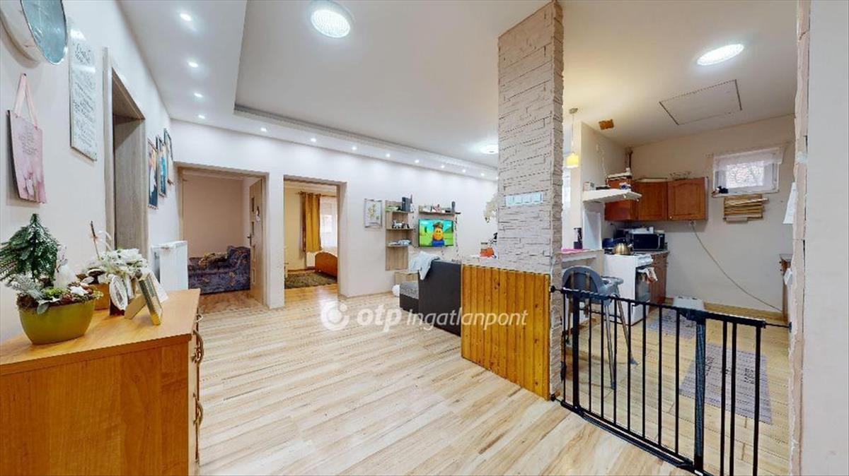 A burkolatok is igényesek és egységesek: a konyha, fürdőszoba, wc és a zárt terasz járólappal fedett, míg a lakótér többi részében meleg hatású laminált padló teszi otthonossá a tereket. Két tágas szoba, egy kisebb gyerekszoba, valamint egy külön kialakított gardróbszoba biztosítja, hogy minden családtagnak jusson saját tér.