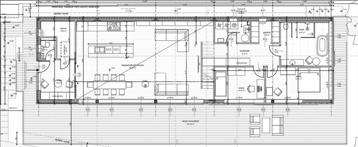 A 70 m²-es panorámás terasz üvegkorláttal készül, burkolata 10 000 Ft/m² áron.