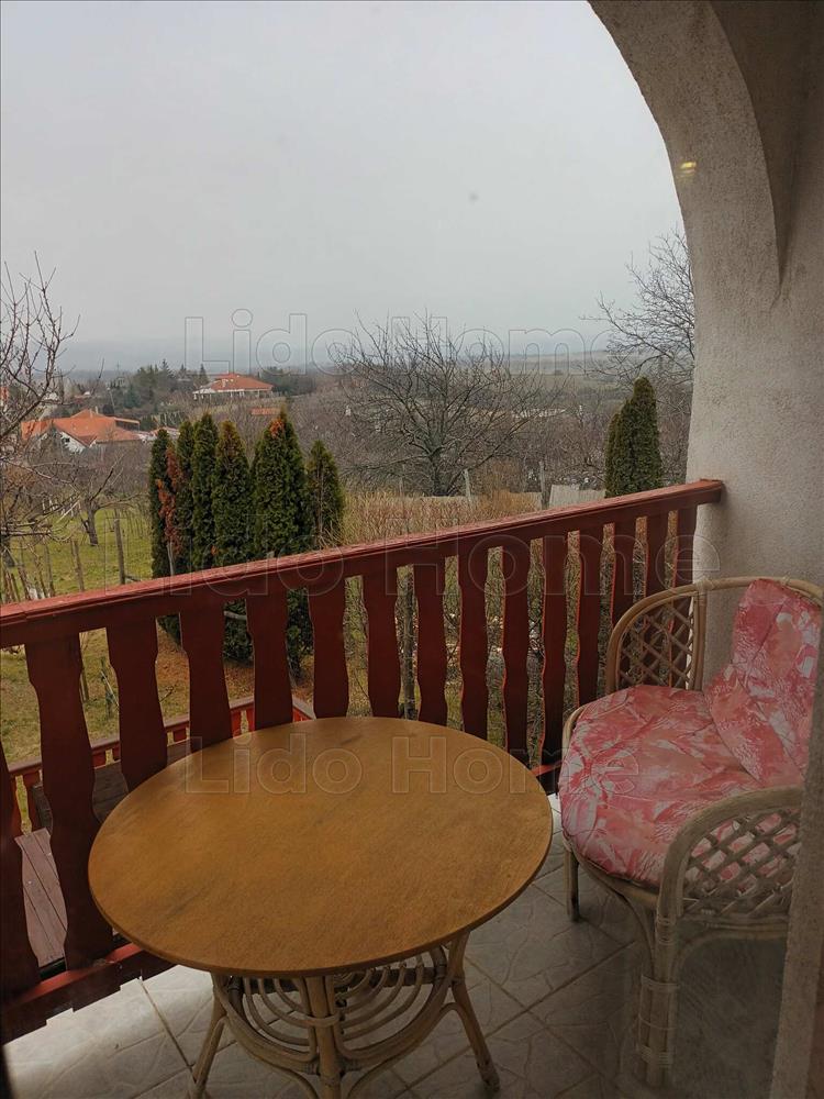 -a szobákból tágas erkélyre lépünk, ahonnan nagyon szép panoráma nyílik a Bakony hegységre