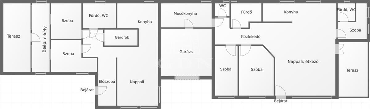 Nappali-konyha, 2 hálószoba, gardróbhelyiség, fürdőszoba-wc, beépített és egy nyitott terasz tartozik hozzá.