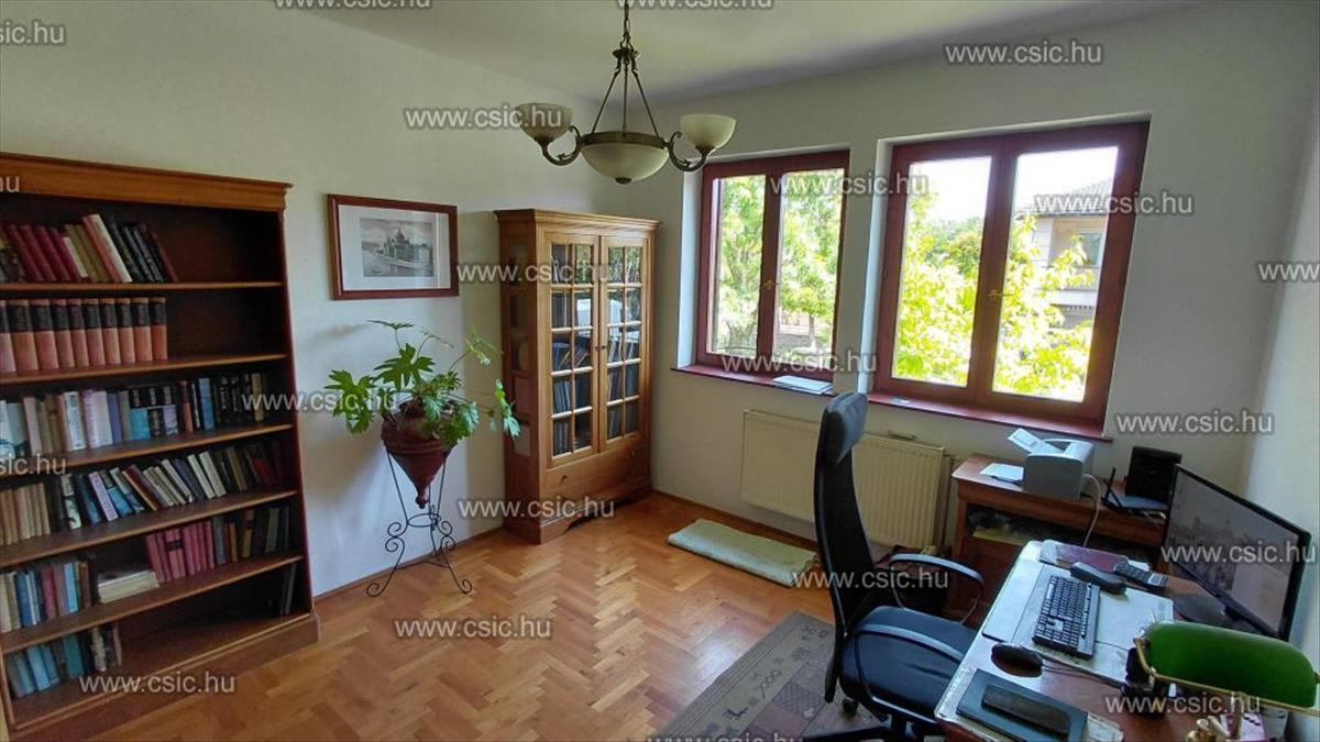 A földszinten található a hangulatos, 38 m2-es nappali, a saját ablakkal rendelkező konyha, kamra és az étkező, egy dolgozó/hálószoba, fürdőszoba, vendég wc, valamint egy nagyon hangulatos, hegyi panorámával rendelkező terasz. a ház alapterülete a földszint és az emelet együtt 260 m2, az emeleten az 1, 90 m alatti alapterületeket nem számítva is 215 m2-es a lakóterület plusz a pinceszint 110 m2-es, így összességében 325 m2 áll rendelkezésünkre, az alacsony belmagasságú területeket nem számítva.