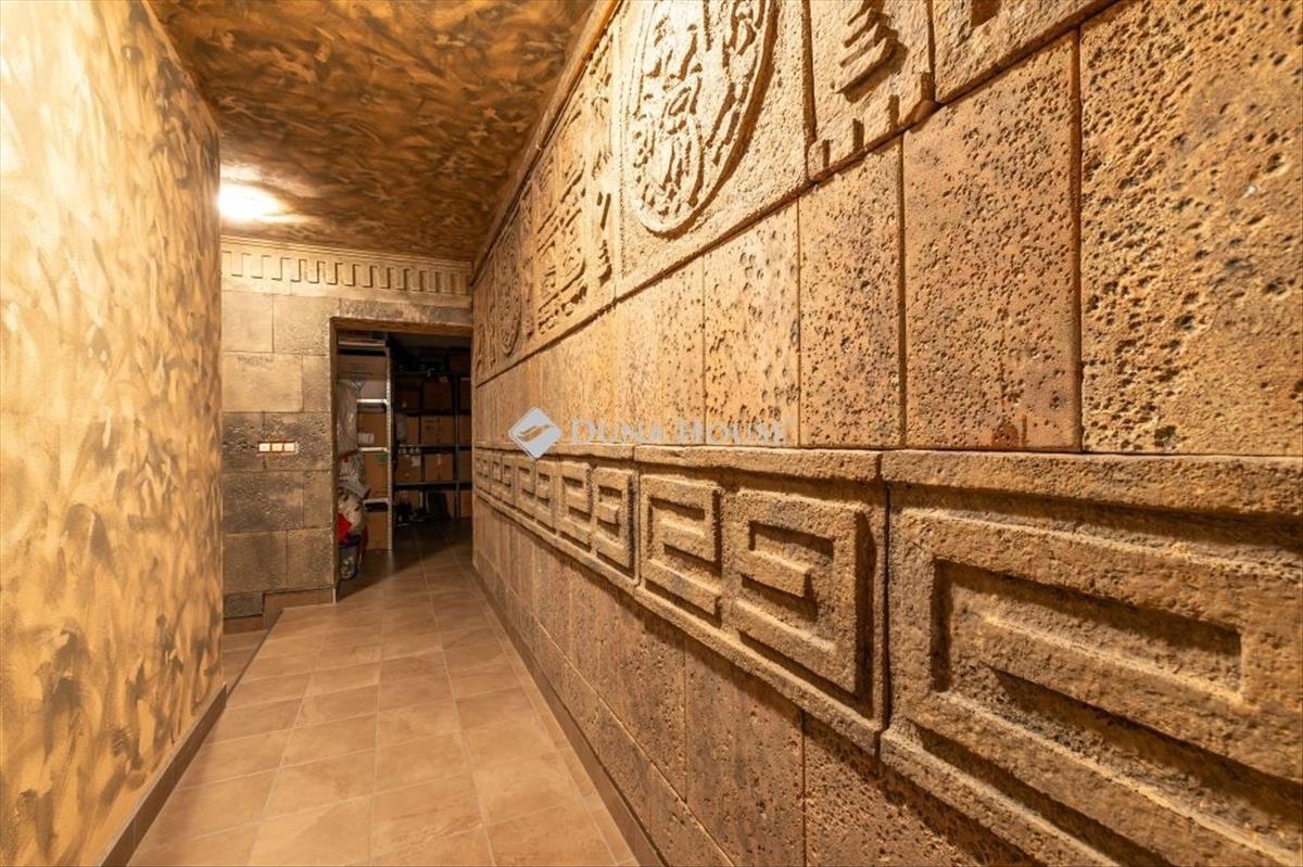 A pincében helyet kapott még egy mosókonyha is, a hozzá tartozó gépészettel. Az egész pince a legapróbb részletekig megtervezett: egyedi fal- és padlóburkolatok, ugyanaz az igényesség és egyediség jellemző rá, mint a ház többi pontjára.