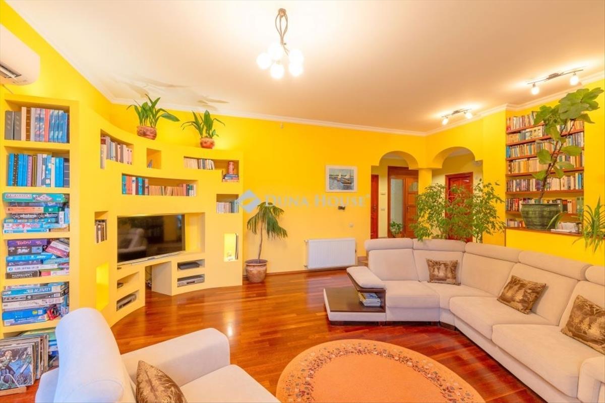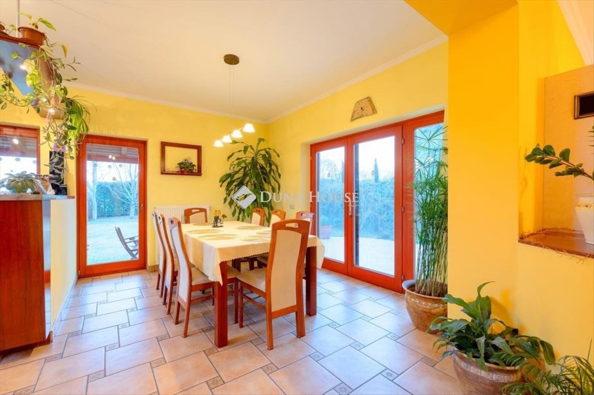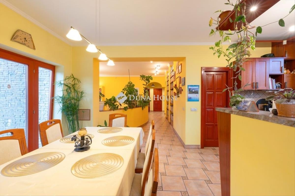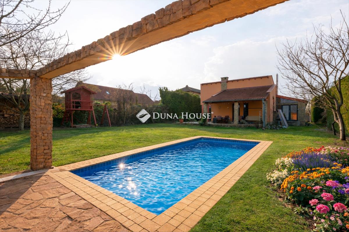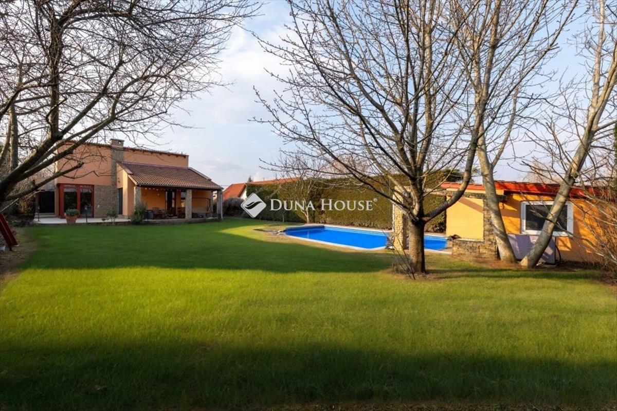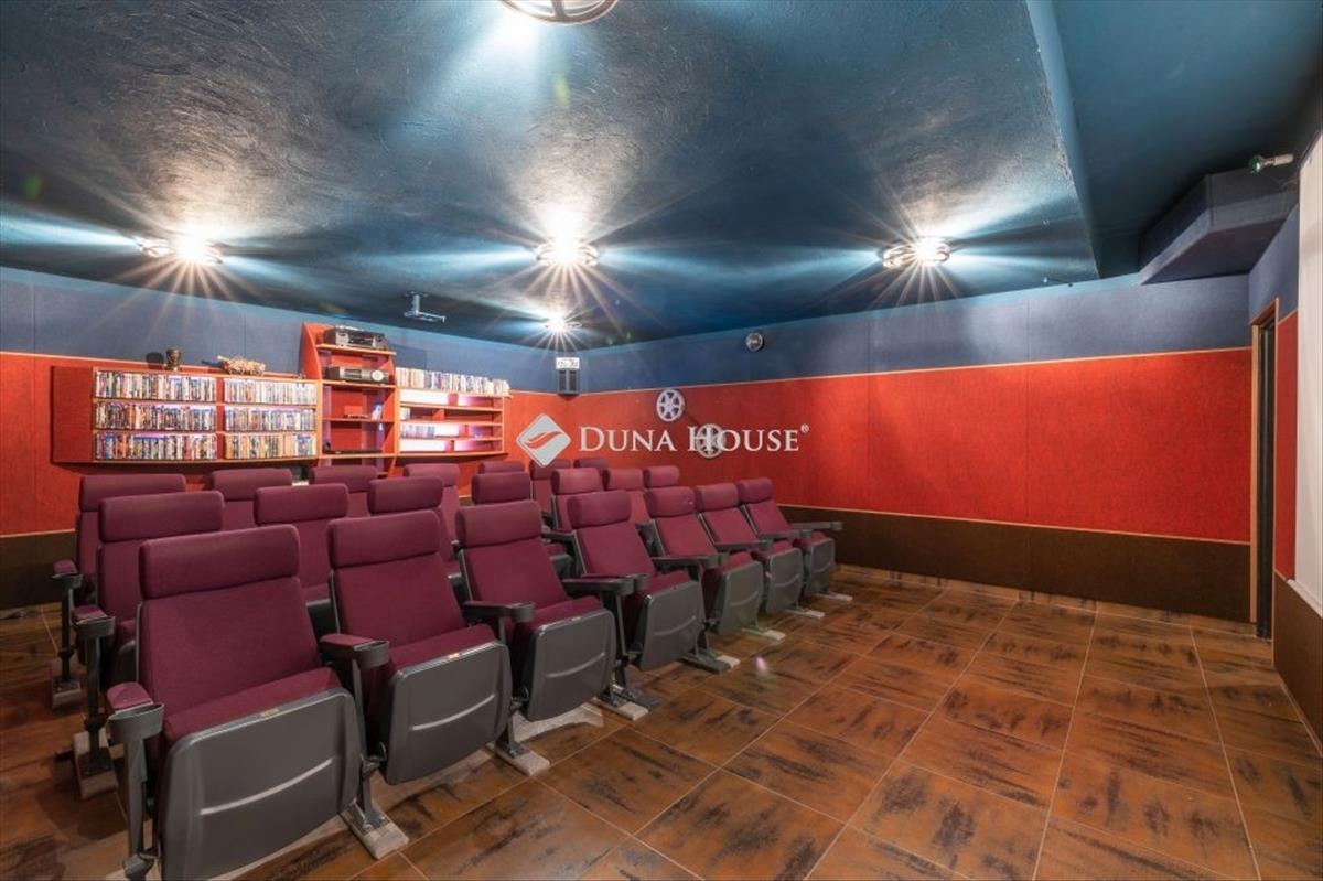 Budapesttől 25 percre, nagyszerű tervezői megoldásokkal megépített, egy lakószinten elhelyezkedő tágas nappali mellett 6 háló, 2 fürdő, konyha-étkezős kialakítású, nettó 240 nm -es lakóterű családi ház, a pince szinten kialakított, több, mint 20 férőhelyes moziszobával, mosókonyhával, rendezett szép, közel 1200 nm -es kerttel, benne medencével, játszóházzal keresi új tulajdonosát.