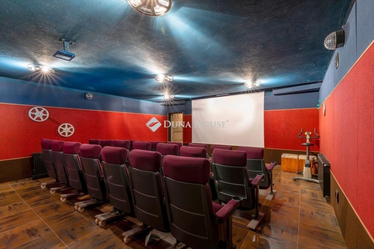 A pincében alakították ki a moziszobát, eredeti tűzálló mozis székekkel, és egy igazi moziban érezheti magát, aki lehuppan a kényelmes székek egyikére. Bevallom, mint filmimádót lenyűgözött a háznak ez a tűpontosan megalkotott része, ami némi kis átforgatással, átrendezéssel egy fergeteges bulihelyszínné is átalakulhat.