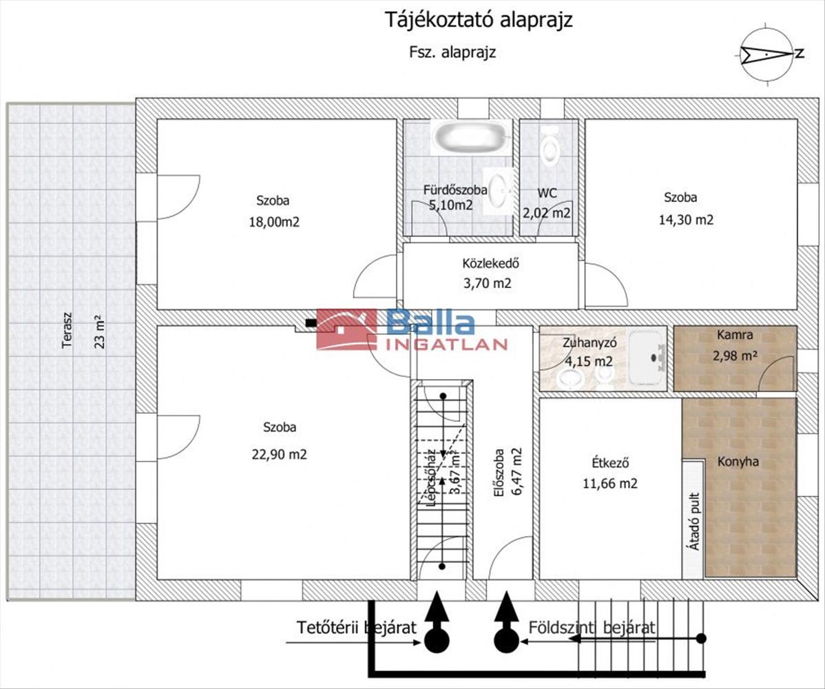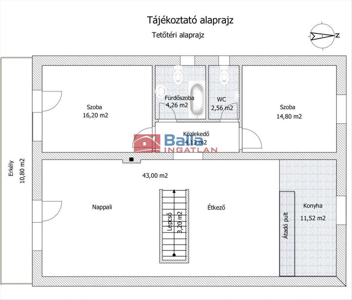 A lakás fölött nagy padlástér található, amely beépíthető.