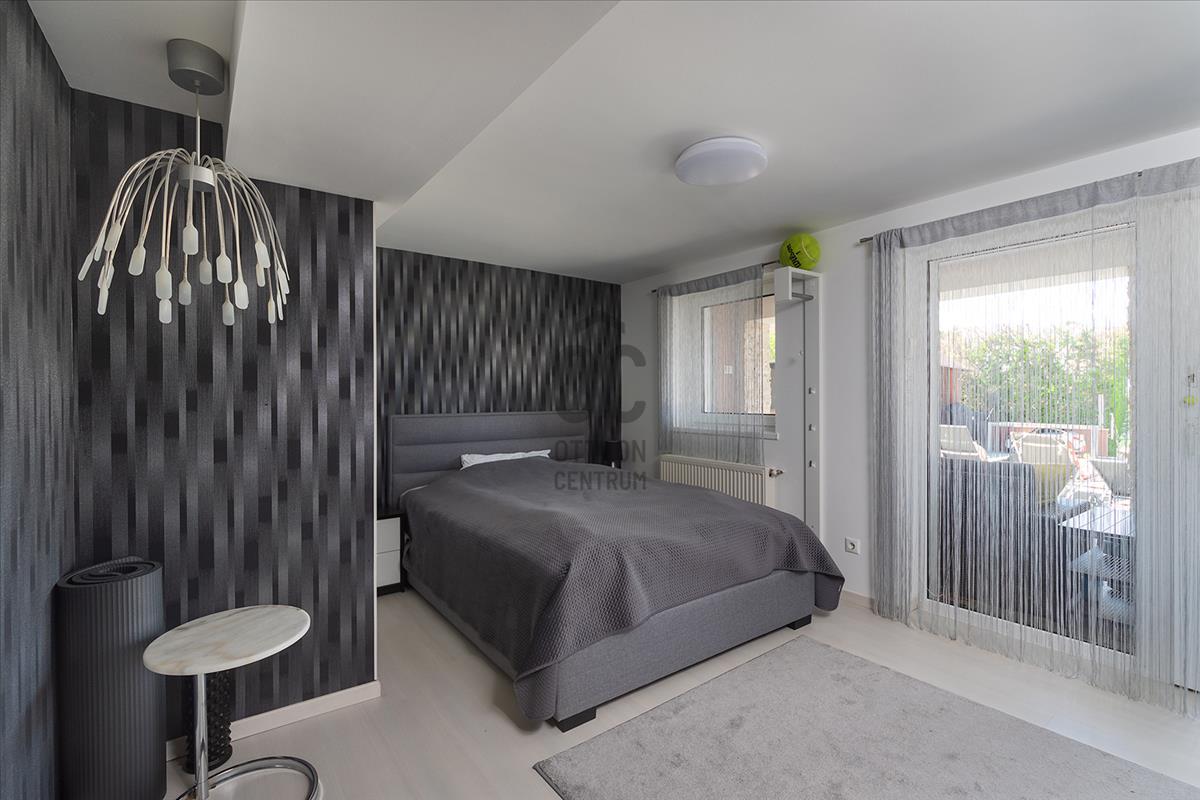 Az első szintről, szintén egy belső lépcsőn keresztül jutunk a felső szintre, ahol található két tágas szoba, egy gardrób szoba, fürdőszoba és wc is.