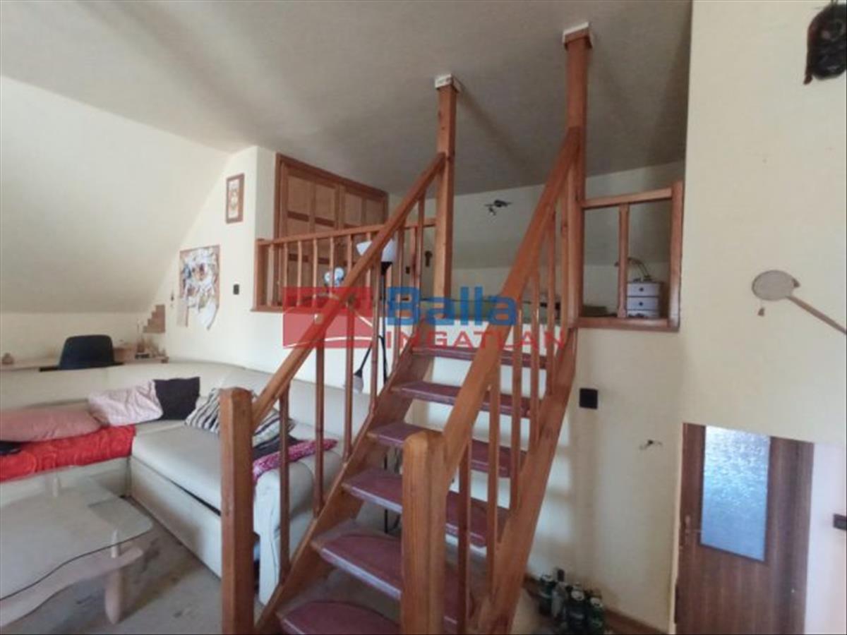 Innen szintén néhány lépcsővel feljebb található az egy légterű tetőtér, amely akár további szobák leválasztására alkalmas.