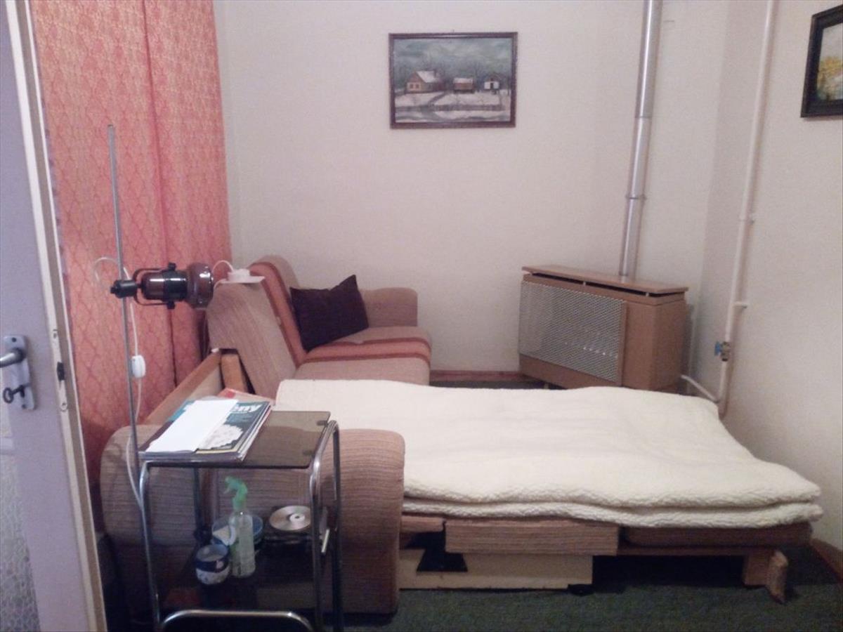 A fürdőszoba burkolata linóleum található benne egy kád, wc, kézmosó, a meleg vizet villany bojler biztosítja.